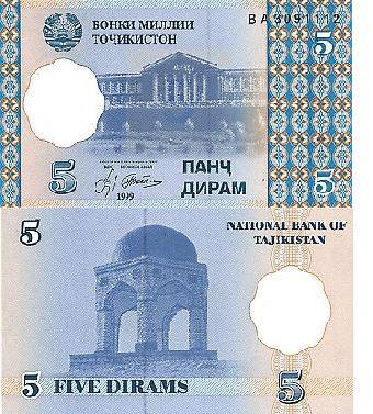 Tadžikistanas 5 diramai 1999 m., P#11a