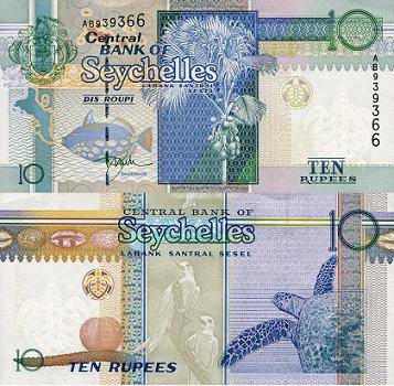 Seišeliai 10 rupijų ND(1998) m., P#36