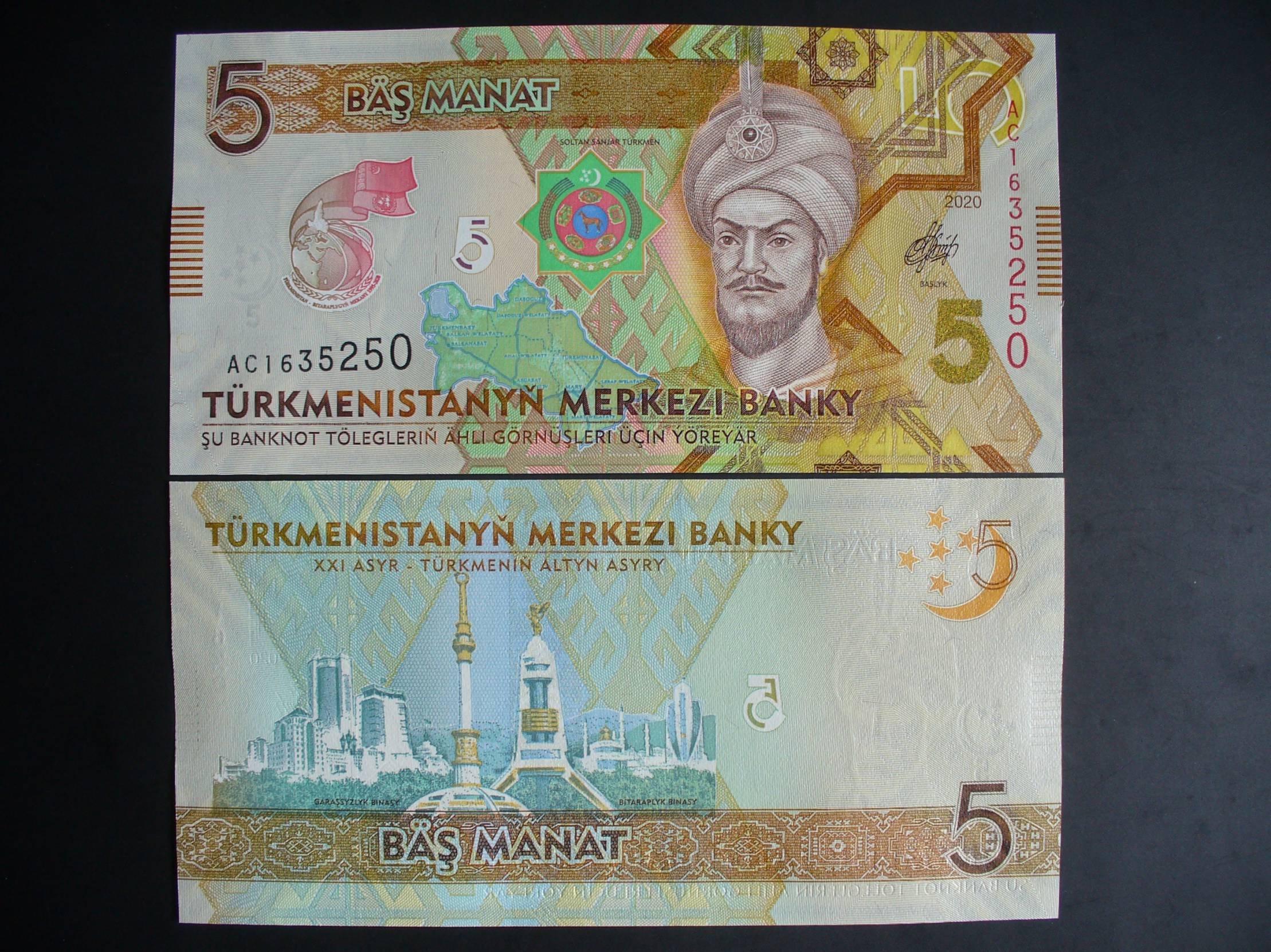 Turkmėnija 5 MANAT 2020 UNC._ P43a__________5126.B
