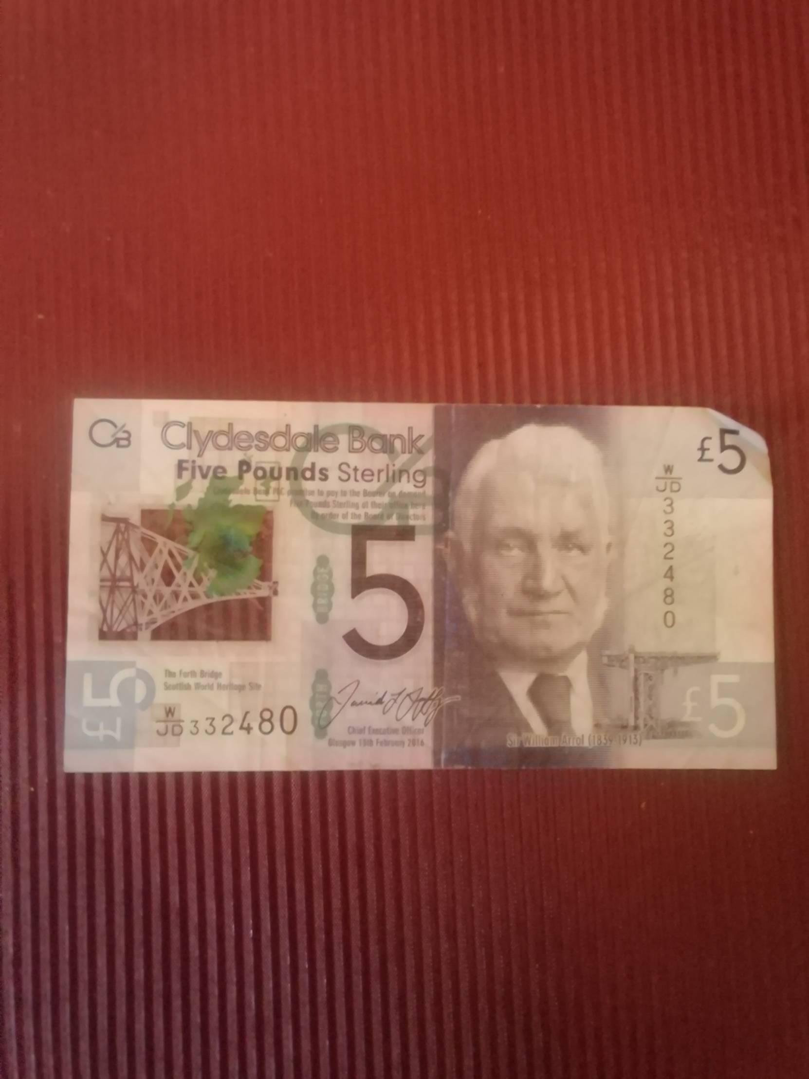 CLYDESDALE BANK 5 POUNDS STERING SCOTISH