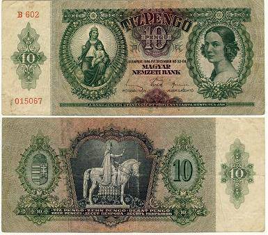 Vengrija 10 pengų 1936 m., P#100, VF-(1)