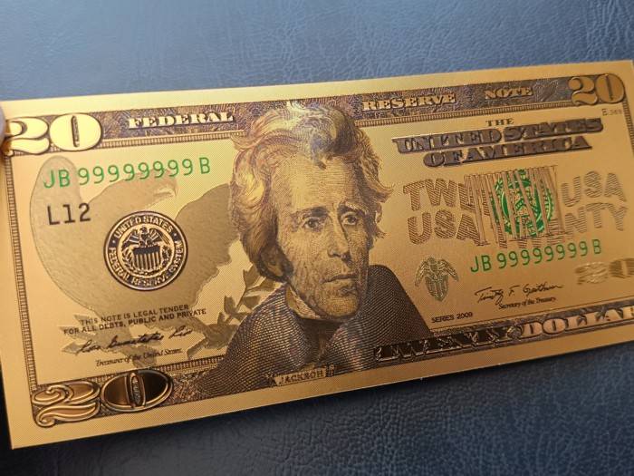 USA 20 dollars. Auksu dengtas, polimerinis bankn..