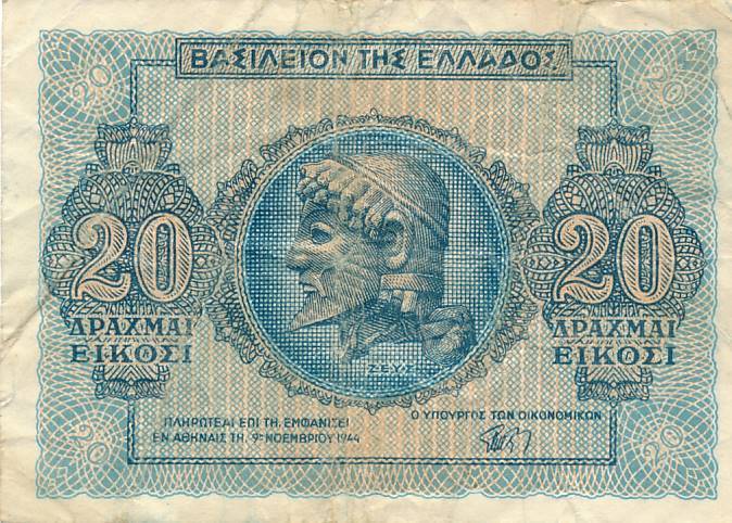 Graikija - 1944 - 20 drachmu - nuo euro