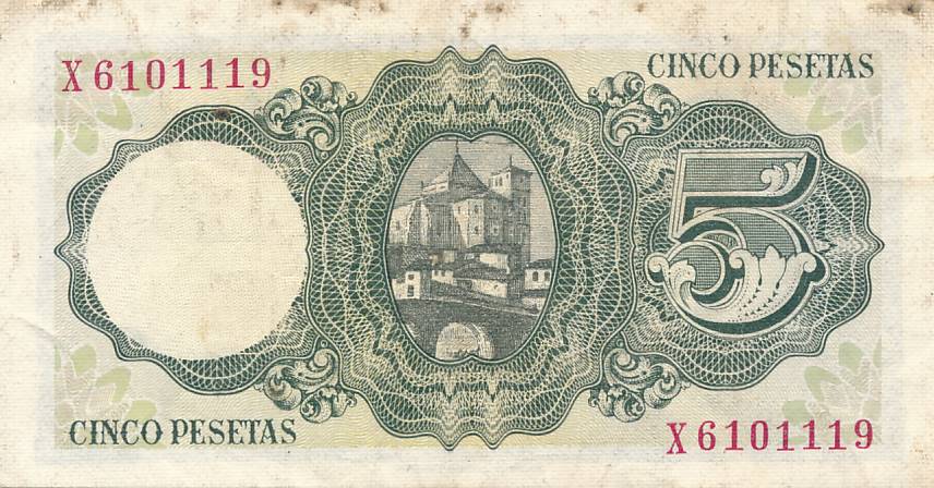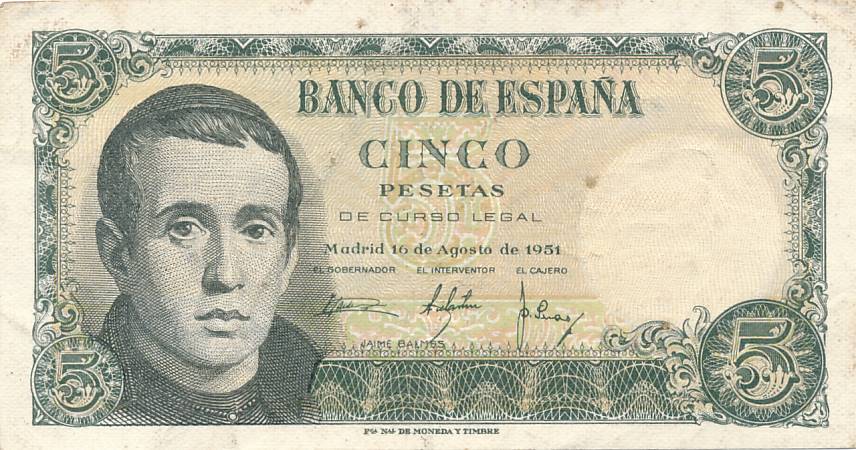 Ispanija - 1951 - 5 pesetos - nuo euro