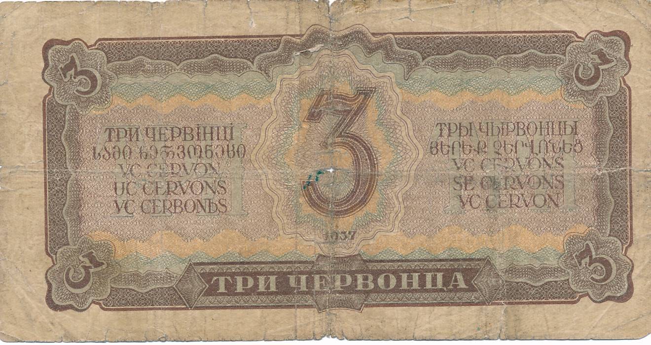 Rusija - 1937 - 3 cervoncai - nuo euro