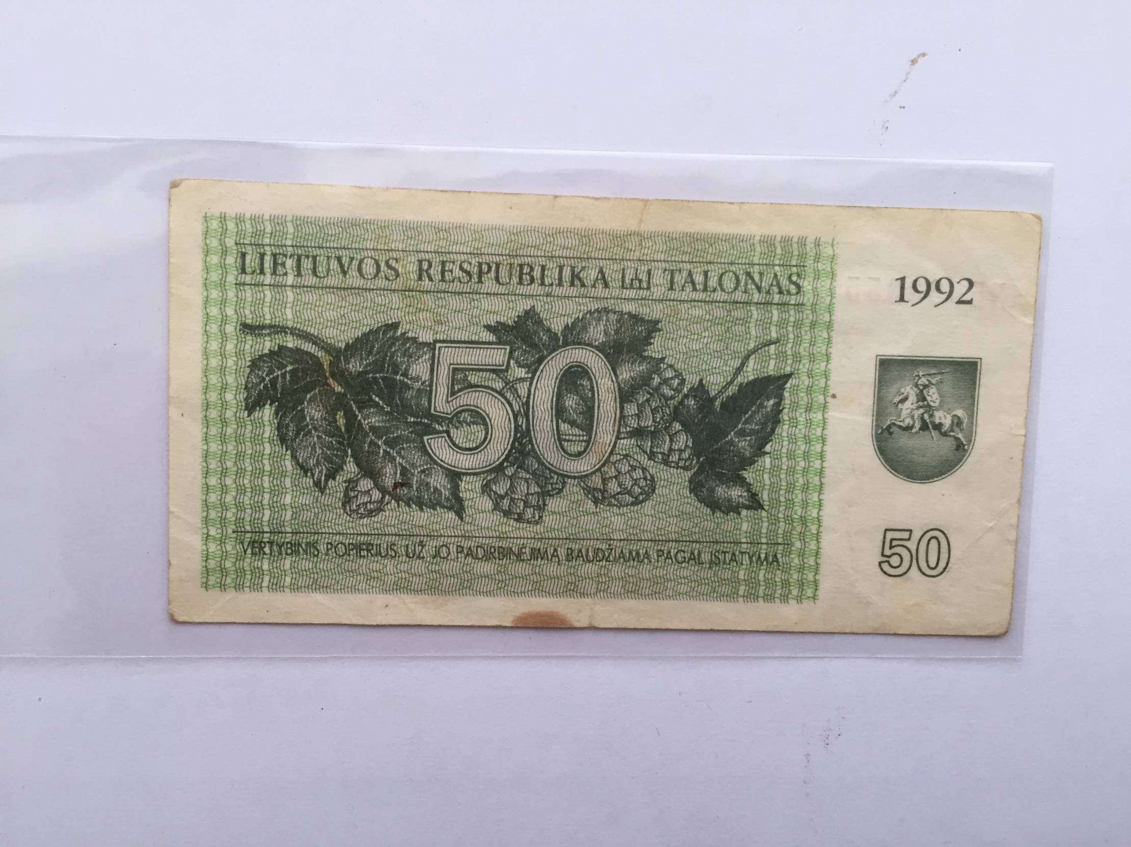 Lietuva 50 talonų 1992m. Nuo 1 euro