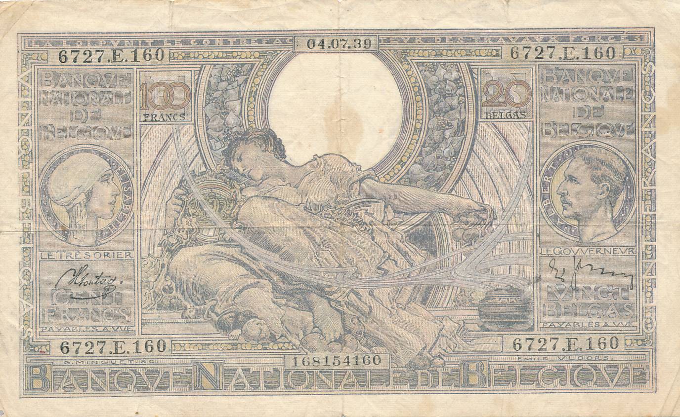 Belgija - 1939 - 100 franku - nuo euro