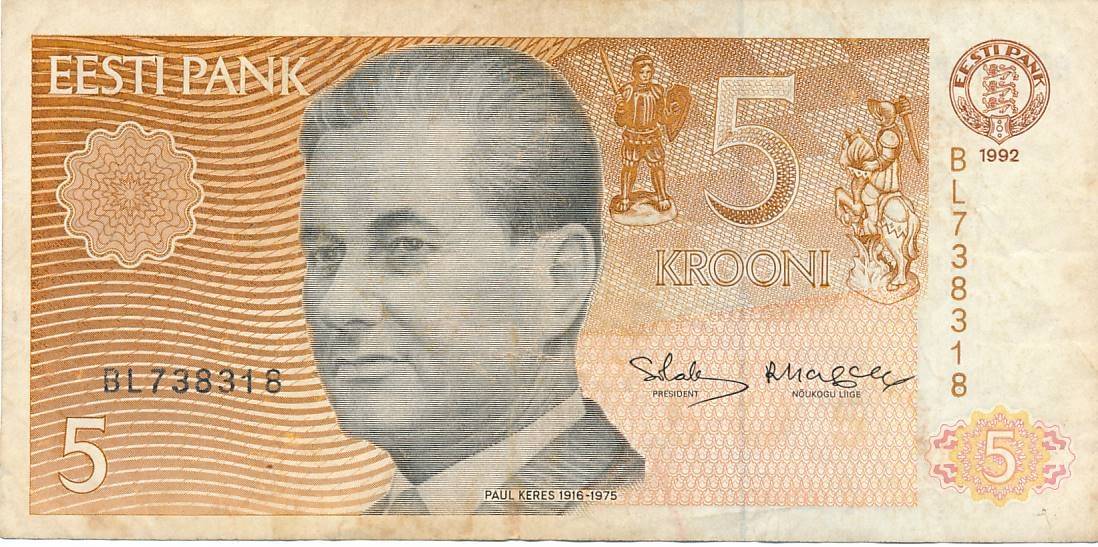 Estija - 1992 - 5 kronos - nuo euro