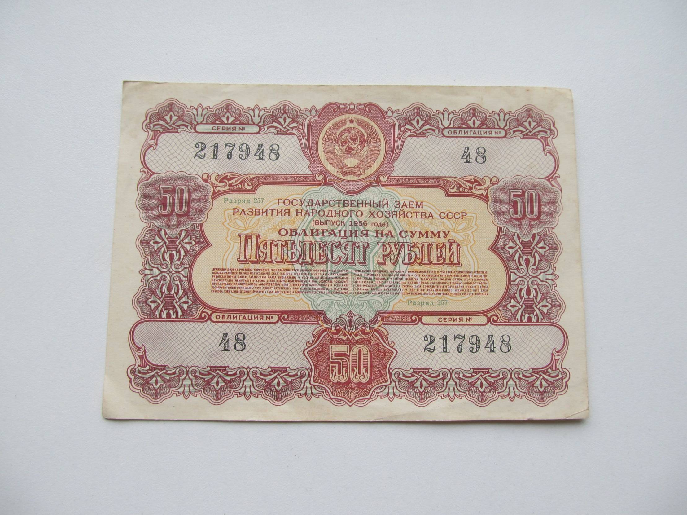 Obligacija 50 rubliu , Cccp , 1956