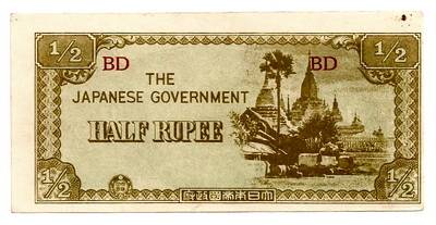 1942,Mianmar (Burma),Unc,Rupee,1/2
