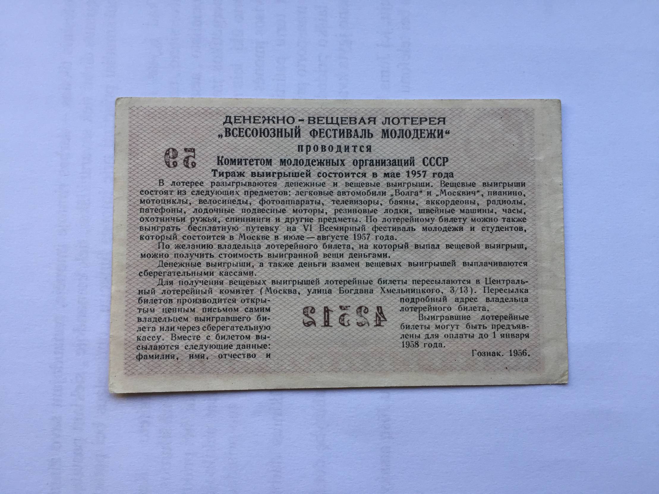 Rusija Festivalis Loterijos bil.1957m.