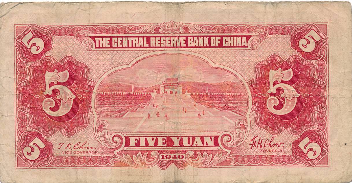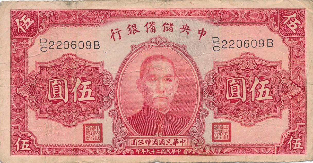 Kinija - 1940 - 5 juaniai - nuo euro