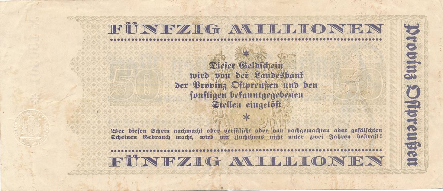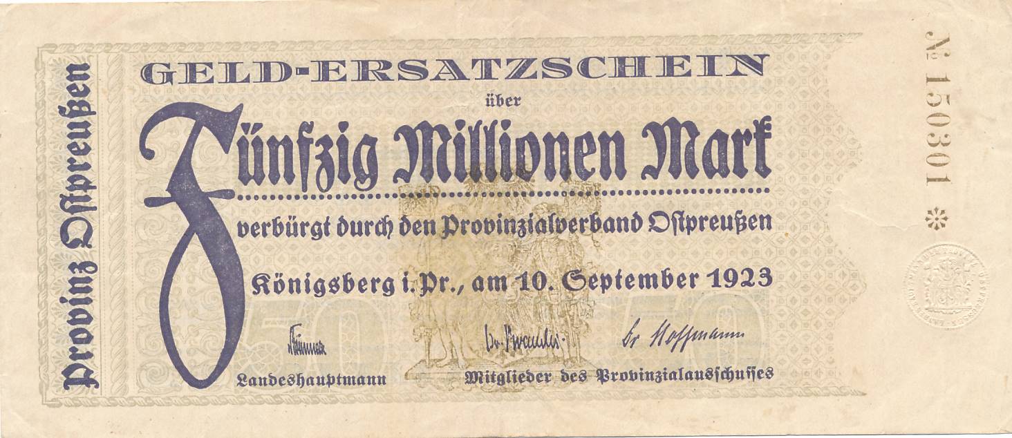 Karaliaucius - 1923 - 50.000.000 markiu - nuo euro