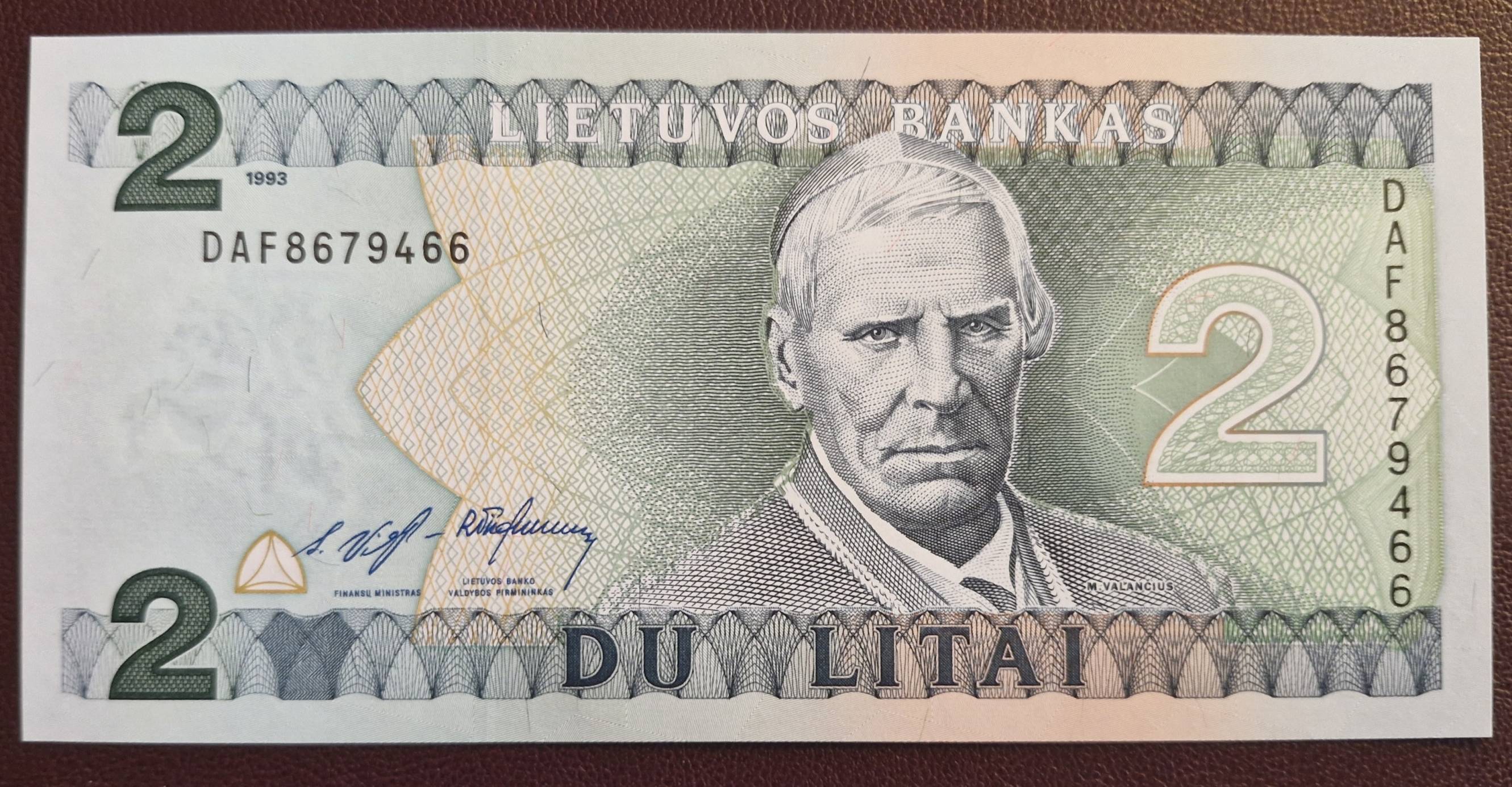 2 Litai 1993 m. DAF serij UNC Lietuva - Nuo 1 Eur