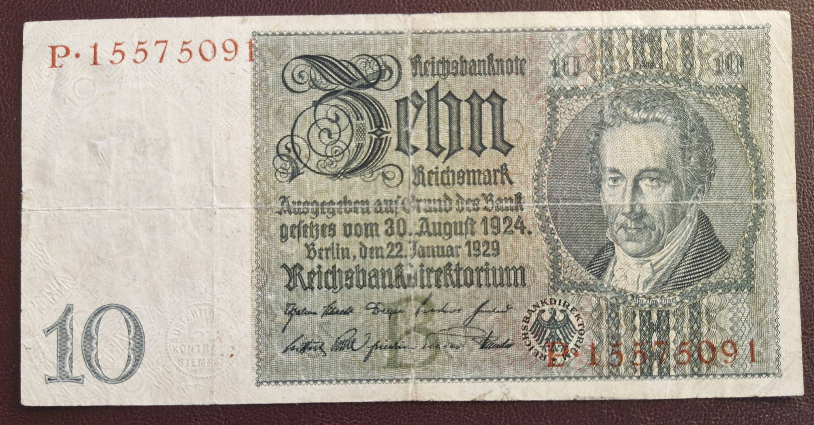 10 Reichsbanknote 1929. Vokietija - Nuo 1 Eur