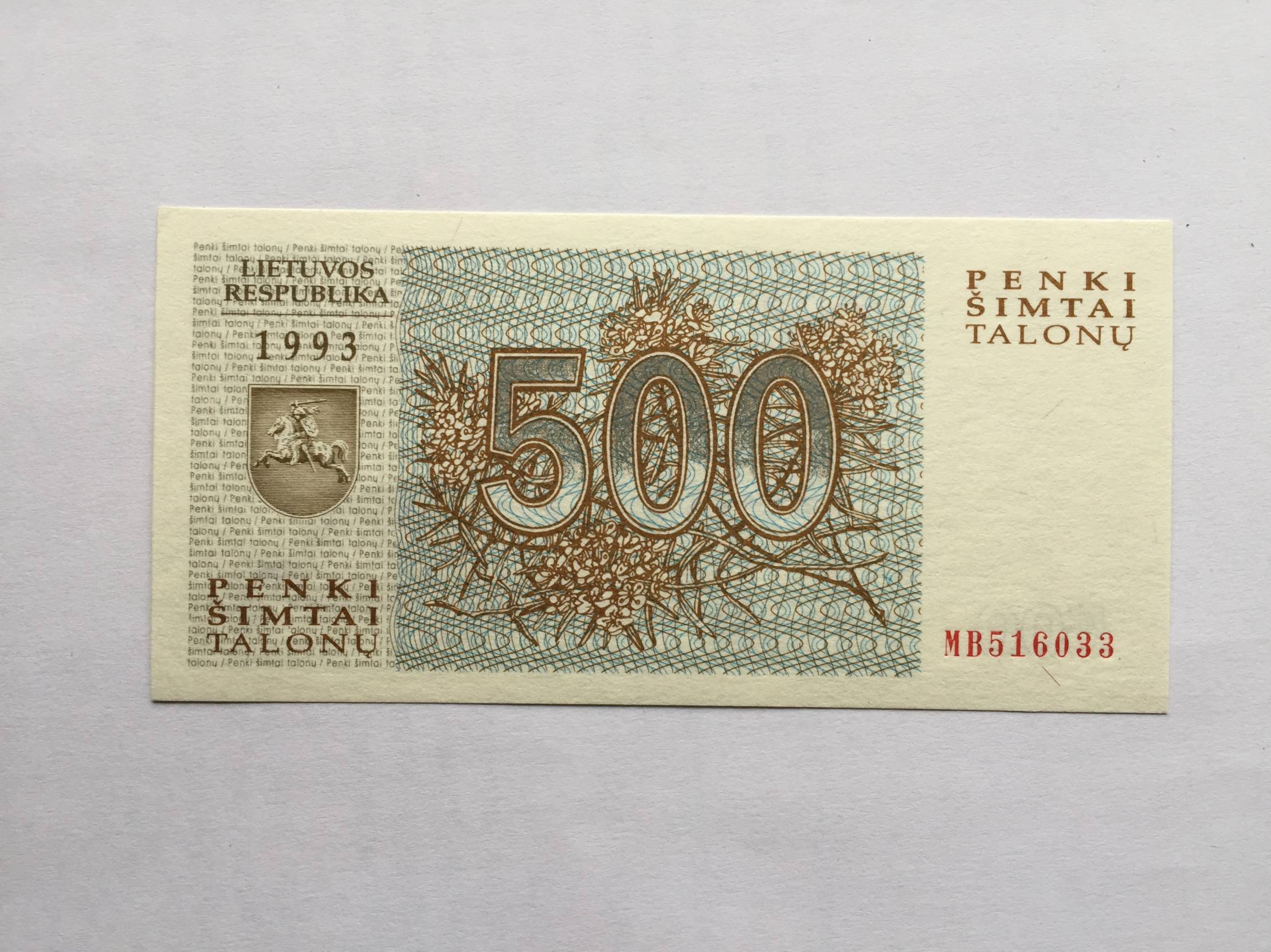 Lietuva 500 talonų 1993m. Nuo 1 euro