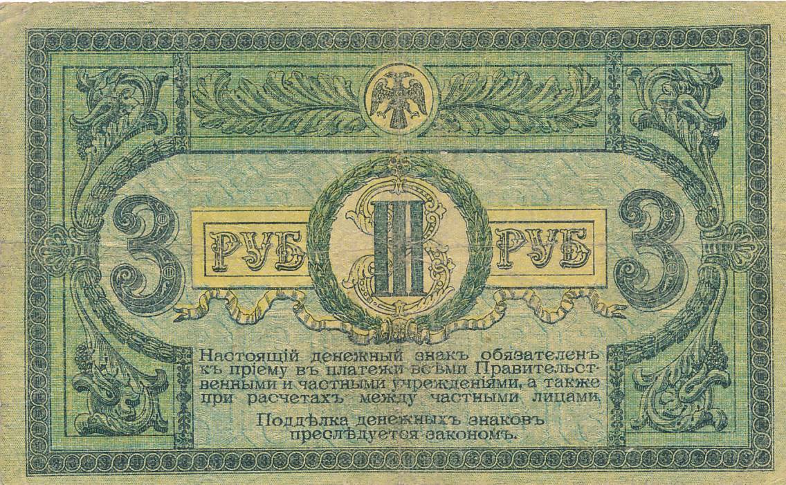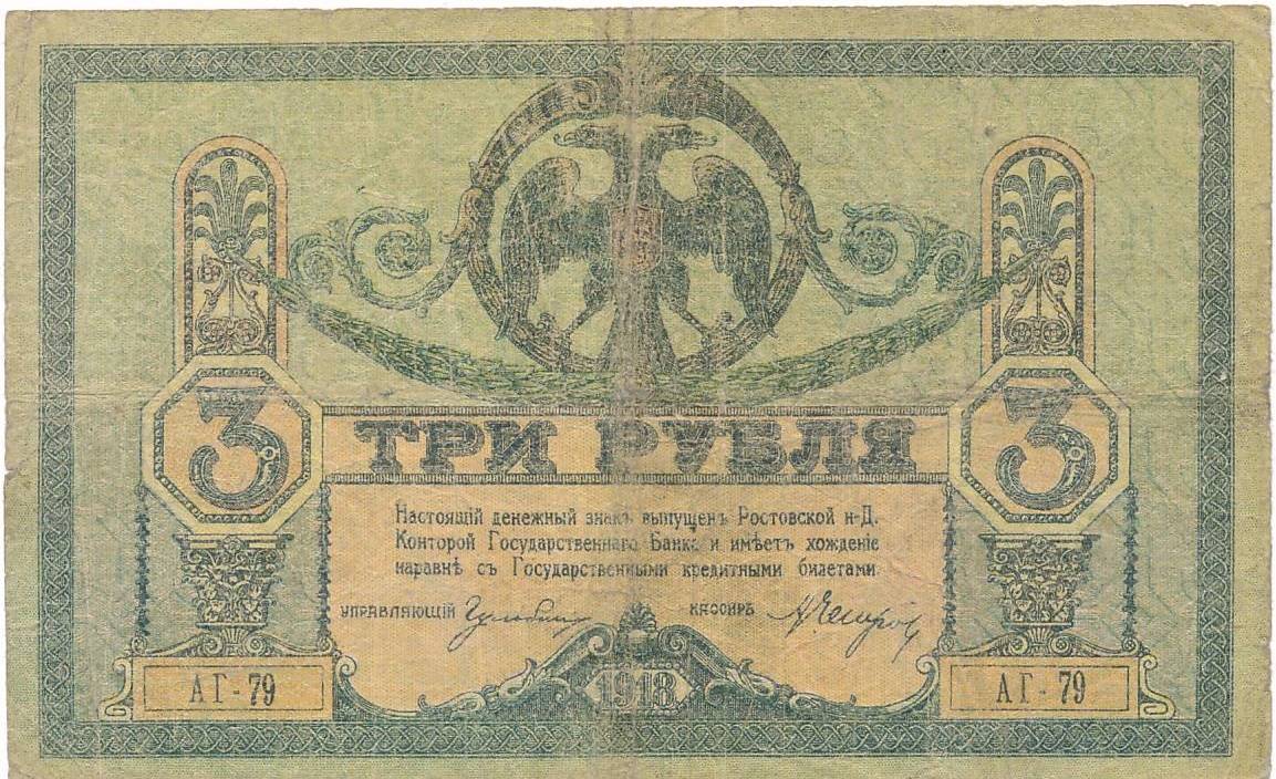 Rusija - Rostovas - 1918 - 3 rubliai - nuo euro