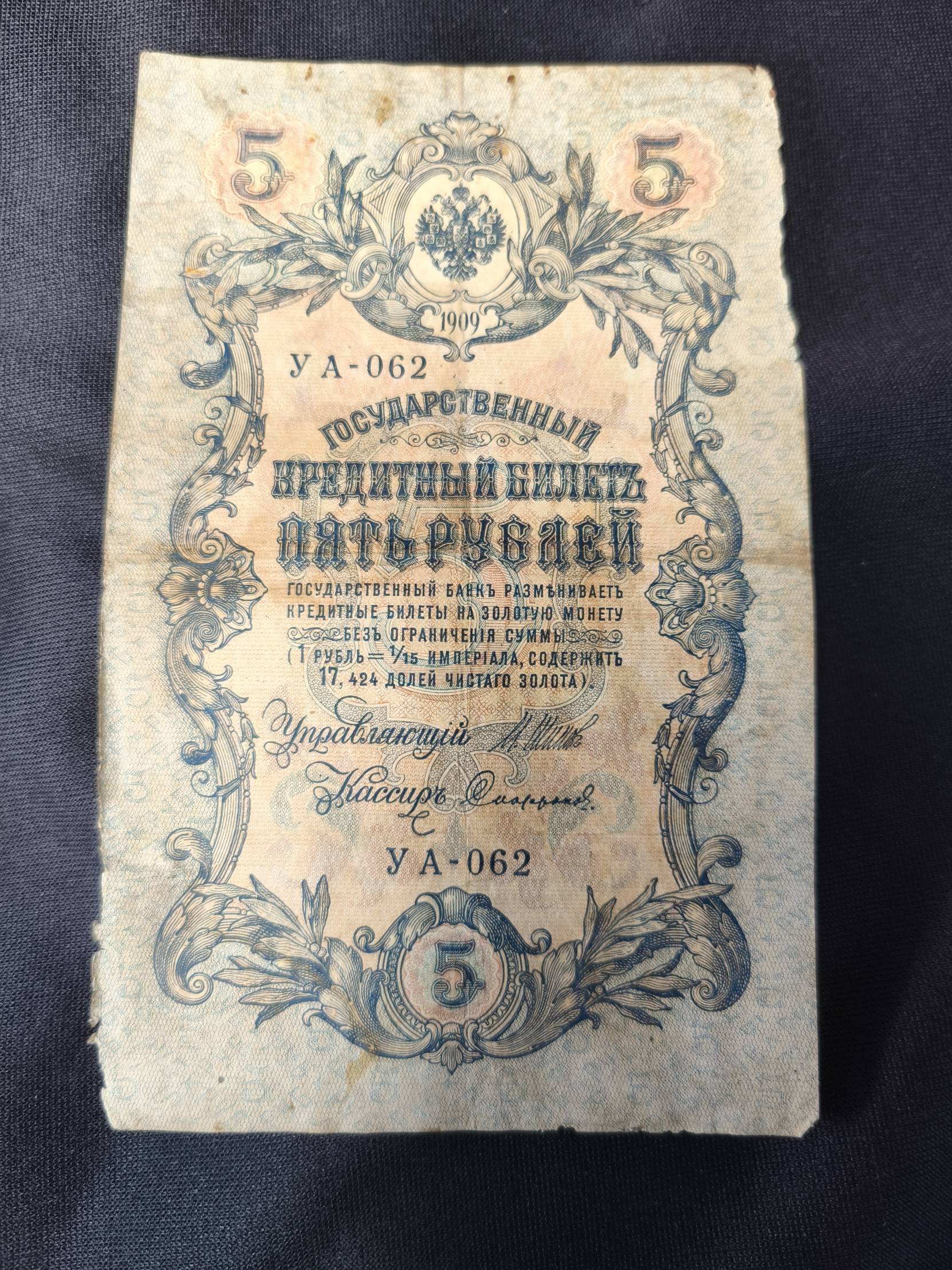 banknotas 1909 m. 5 rubliai Rusija ...062