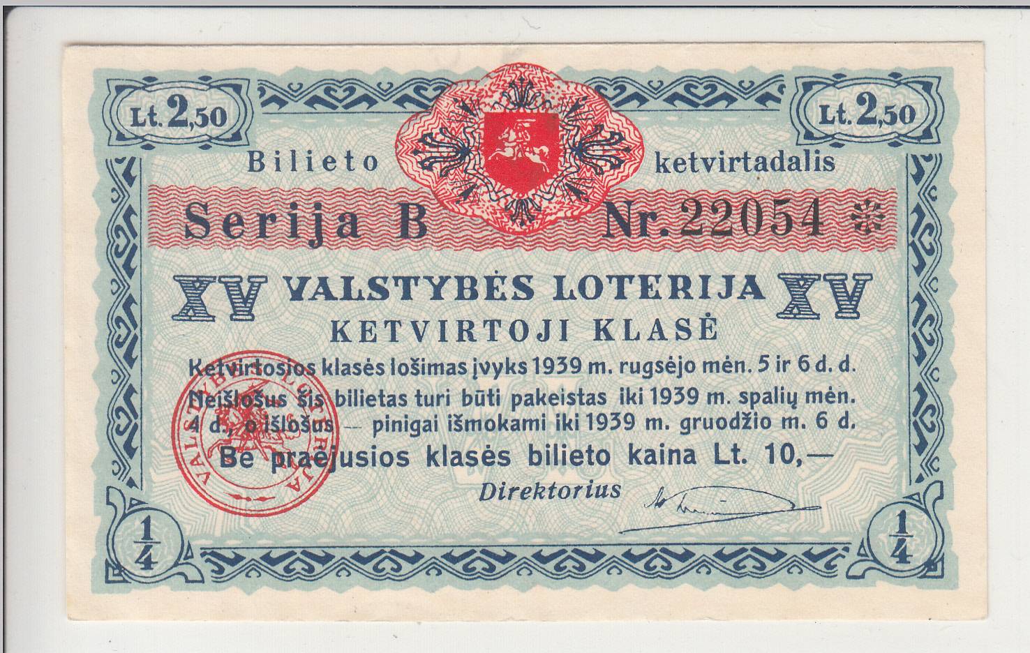 XV Valstybės loterija_serija B_1939m_nuo 1€!