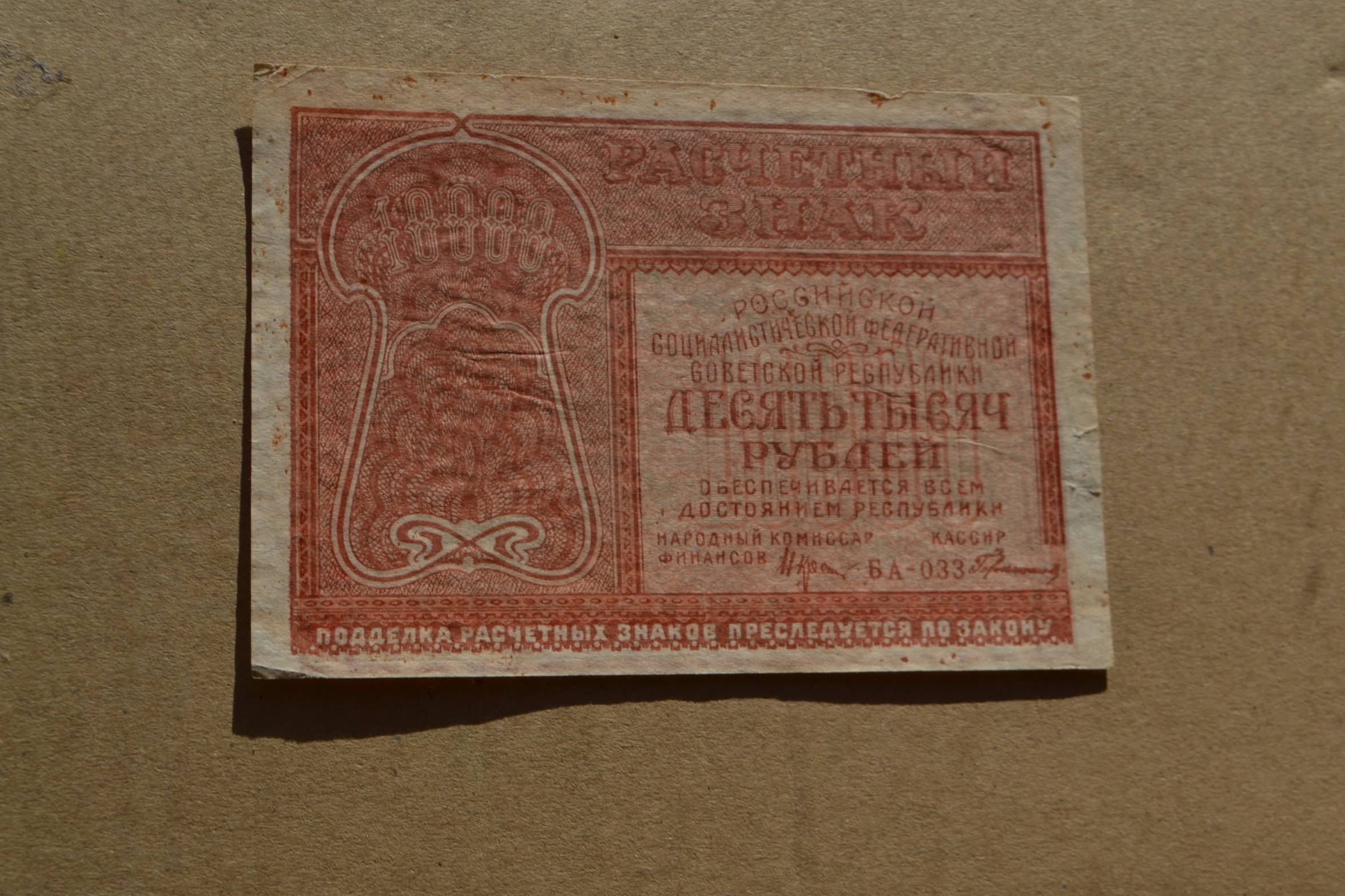 10 000 Rubliu 1921 m.,nuo 1 Euro