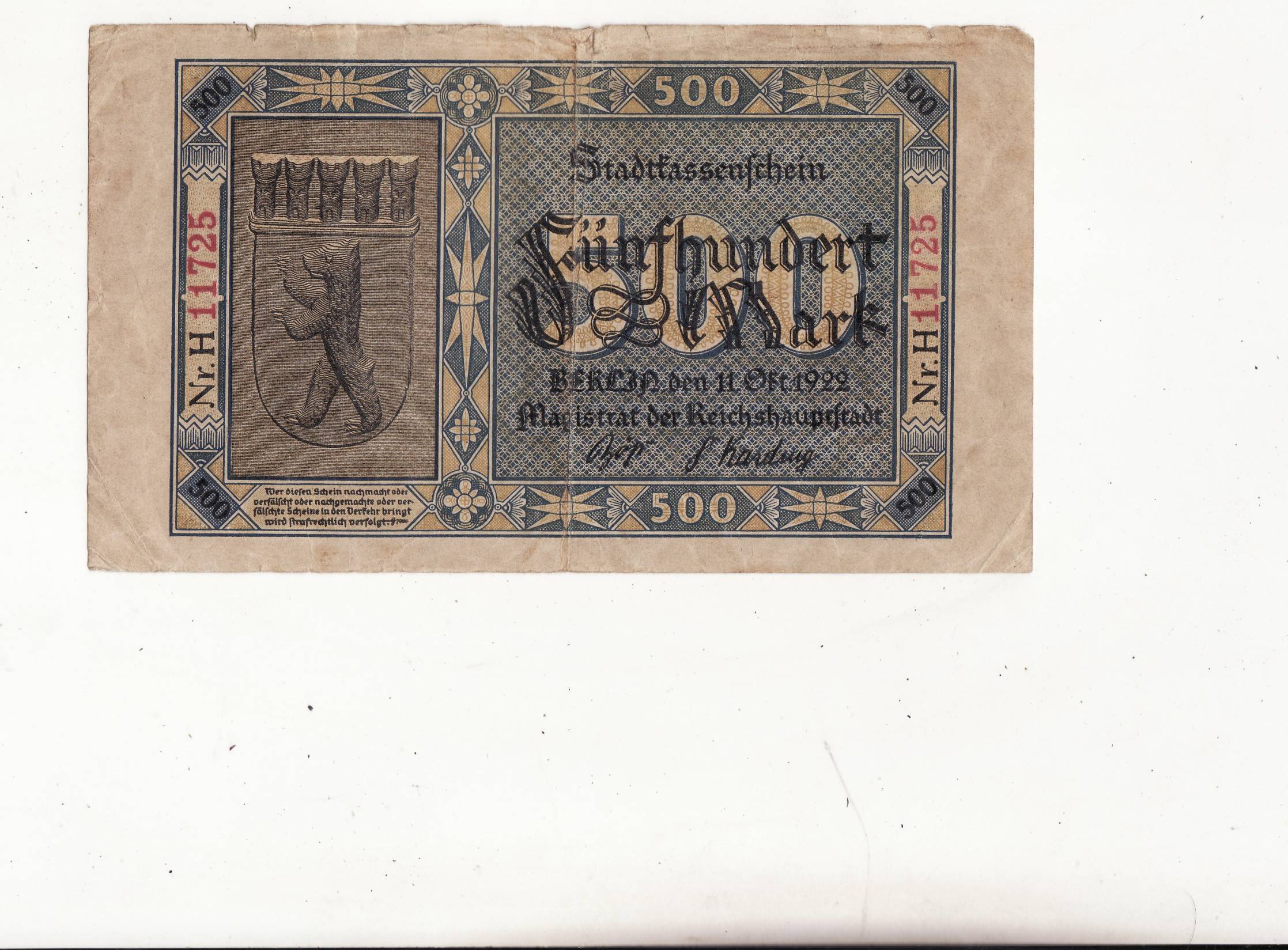 Germany 500M.1922m.3H