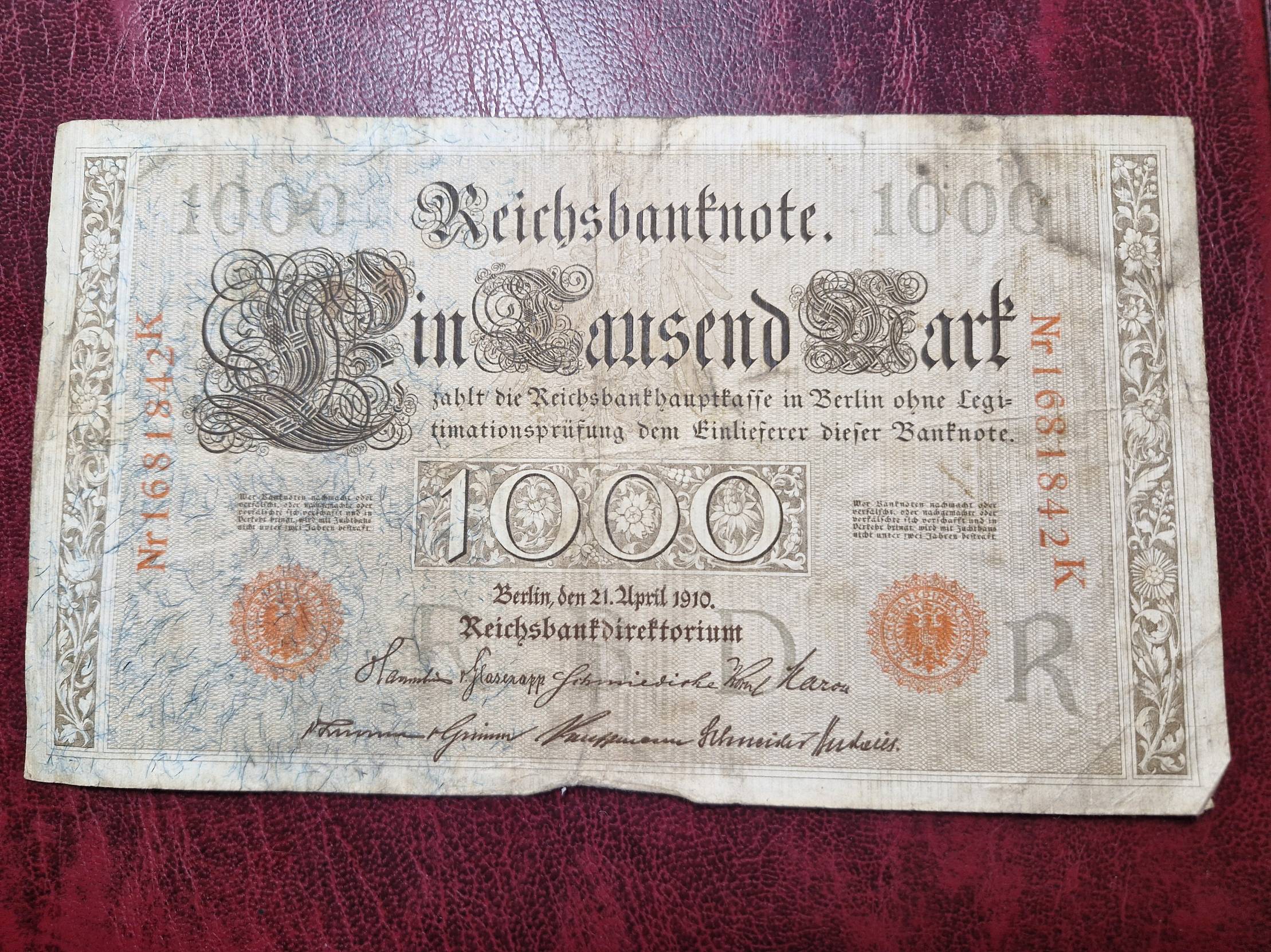 1910, Germany, reichsmark, 1000
