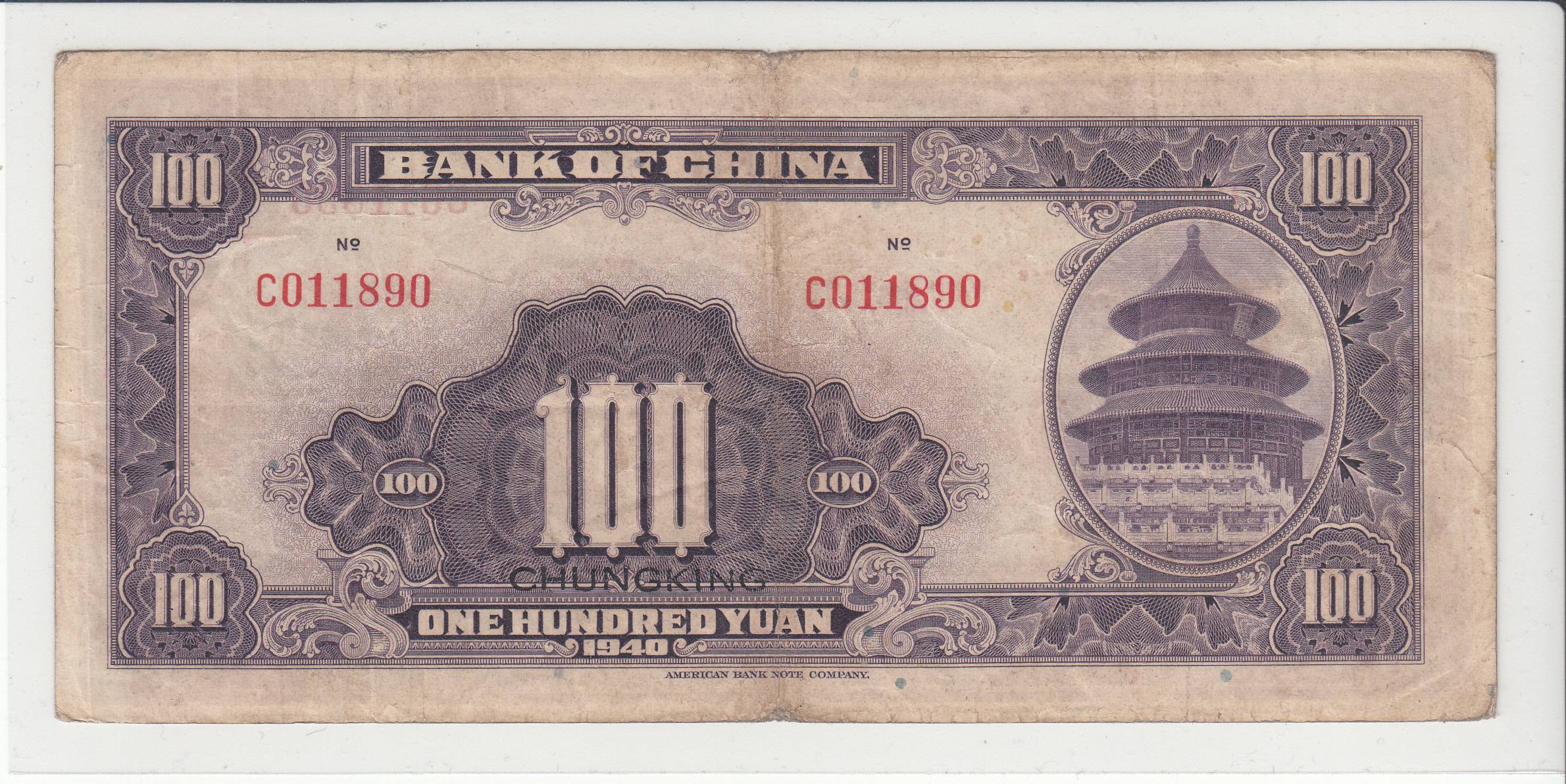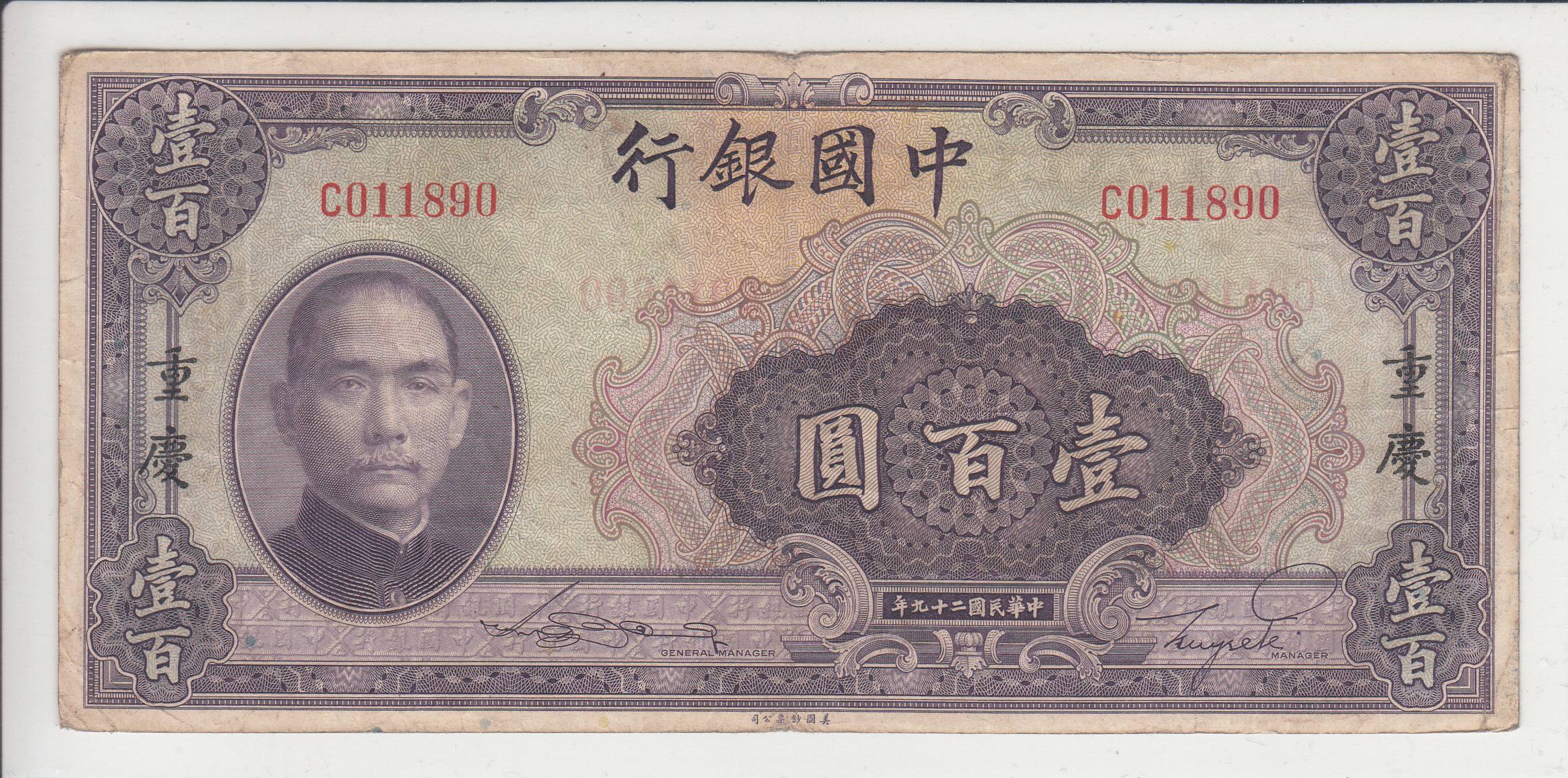 Kinija_100 juanių_1940m_nuo 1€!