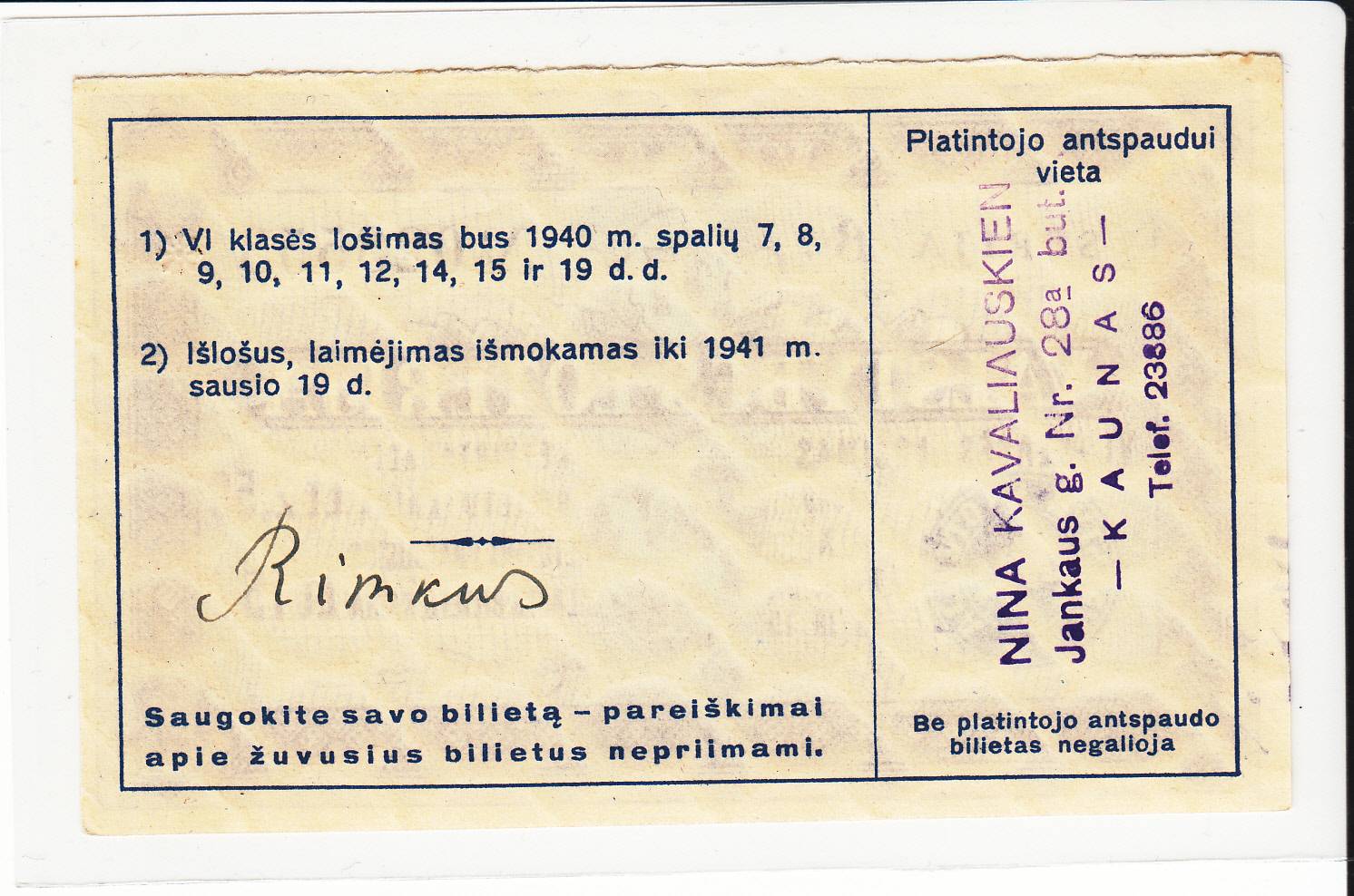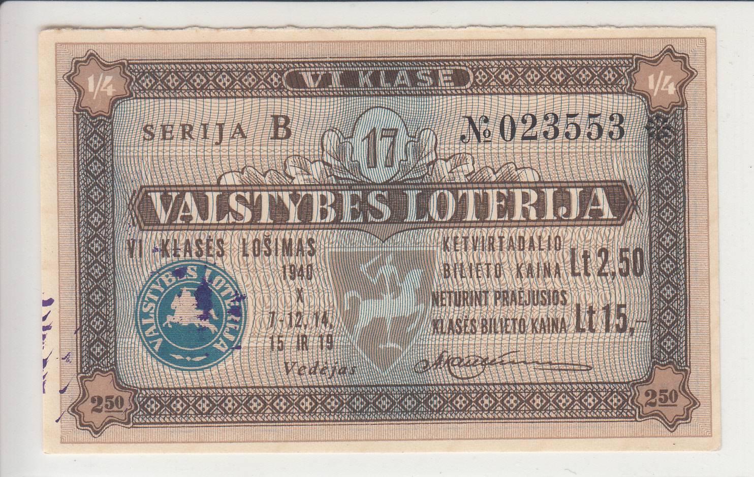 Valstybės loterija_Serija B_1940m_nuo 1€!