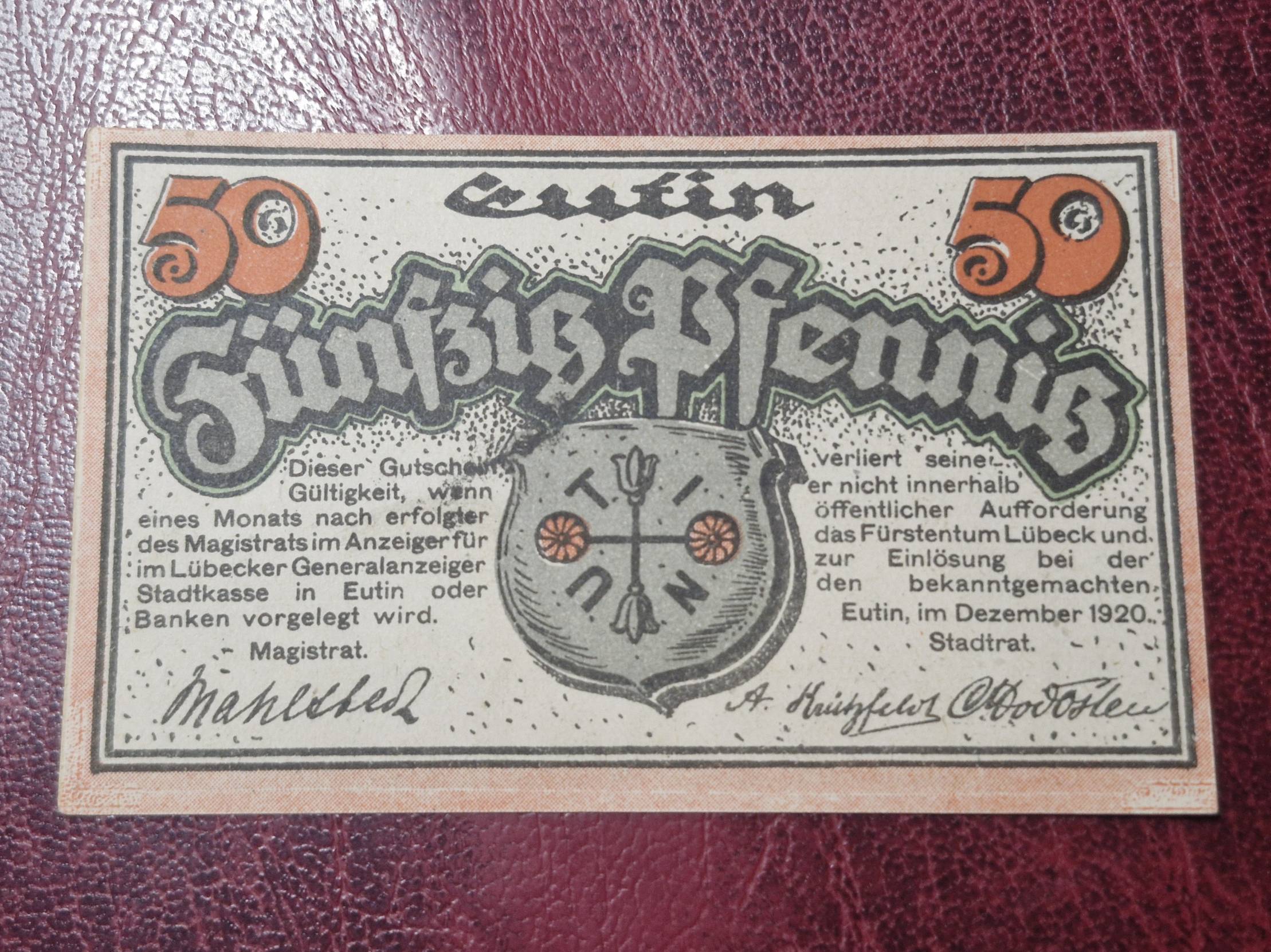 50 Pfennig 1920.12 Eutin Notgeld Vokietija