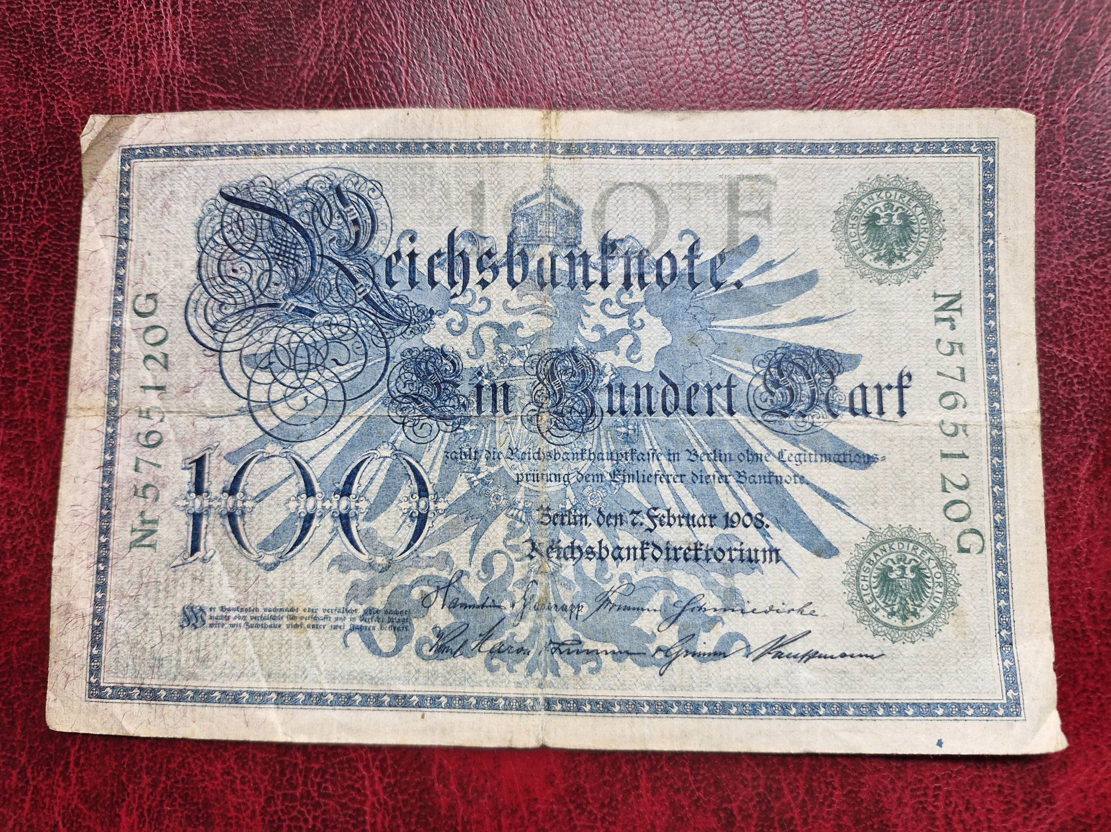 1908, Germany, reichsmark, 100
