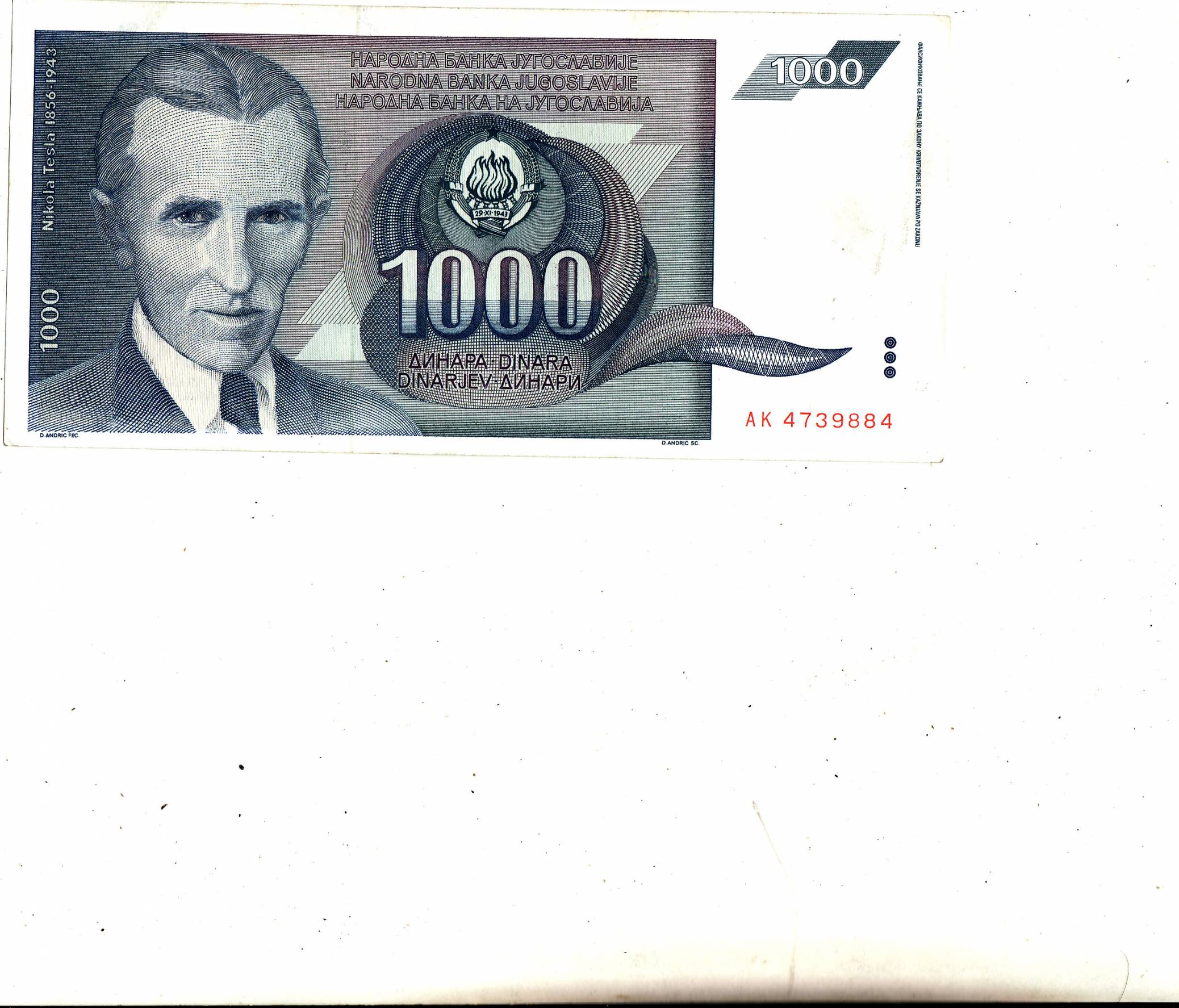 Yugoslavia 1.000din.1991m.P110