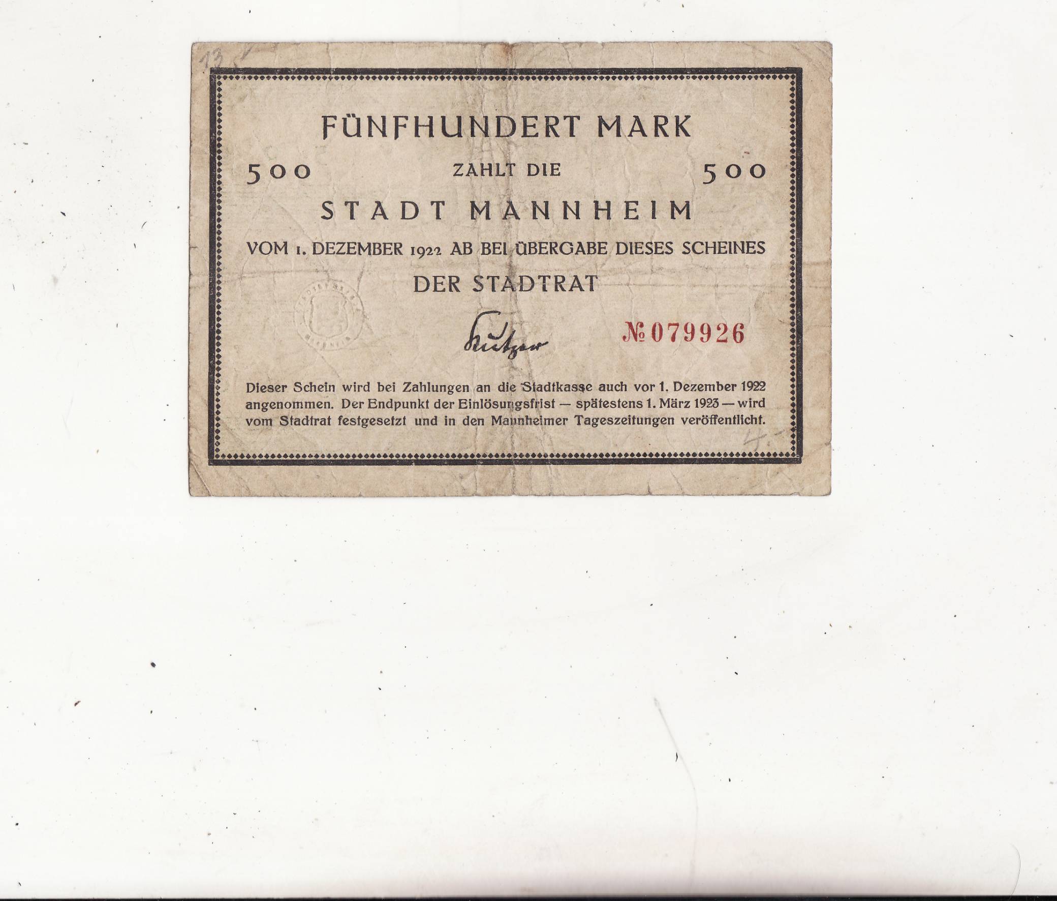 Germany 500M.1922m.26