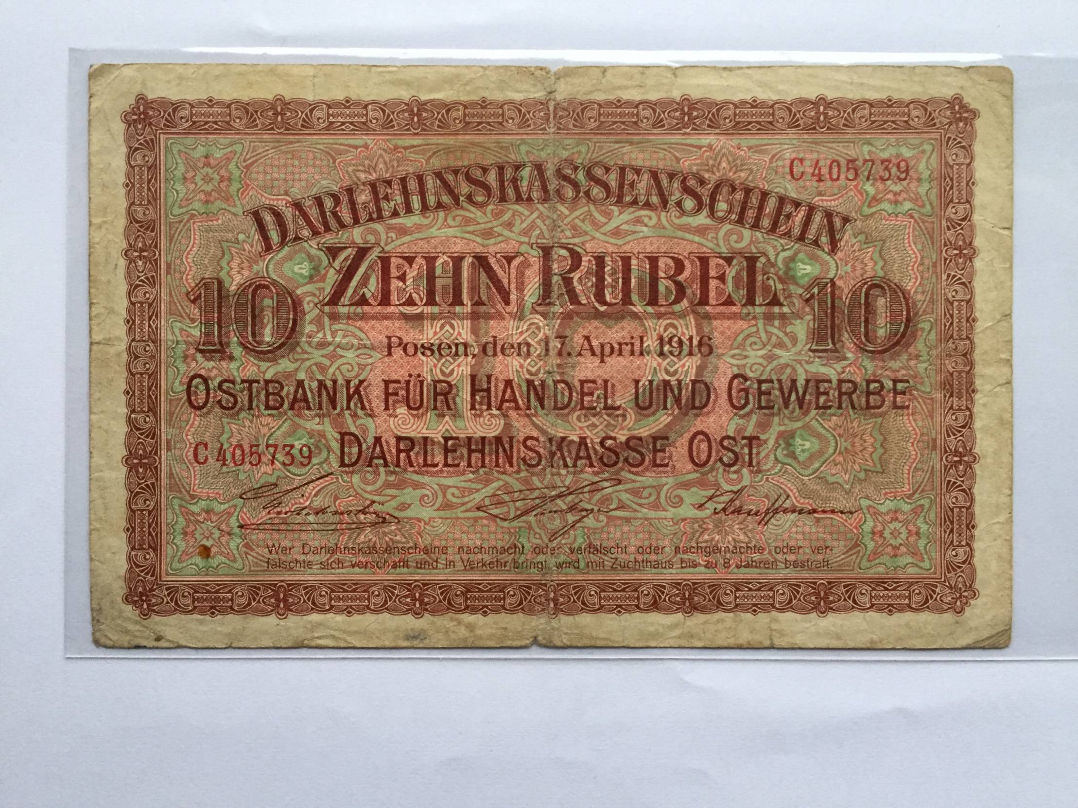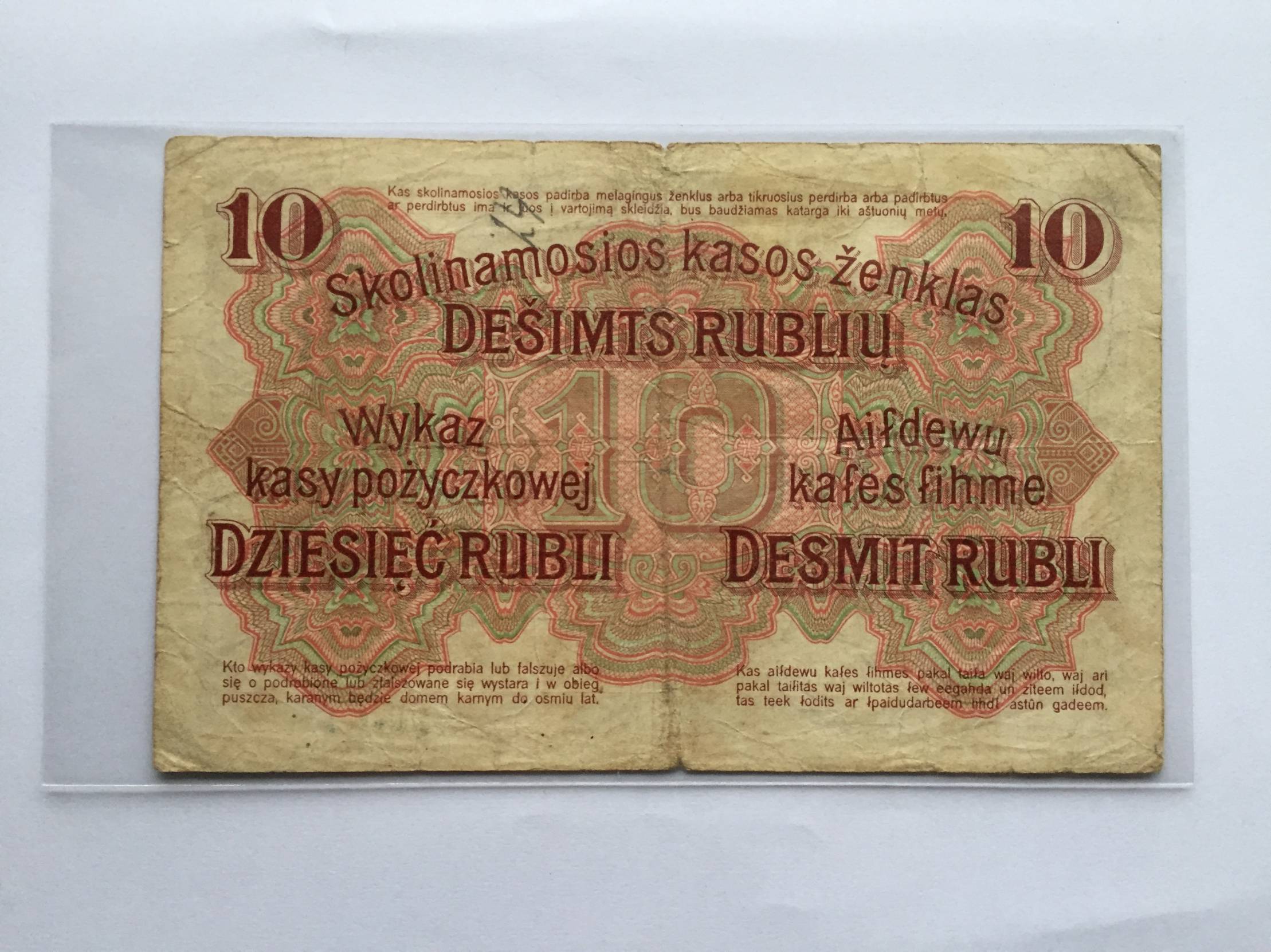 Lietuva 10 OST Rubl. 1916m. Nuo 1 euro
