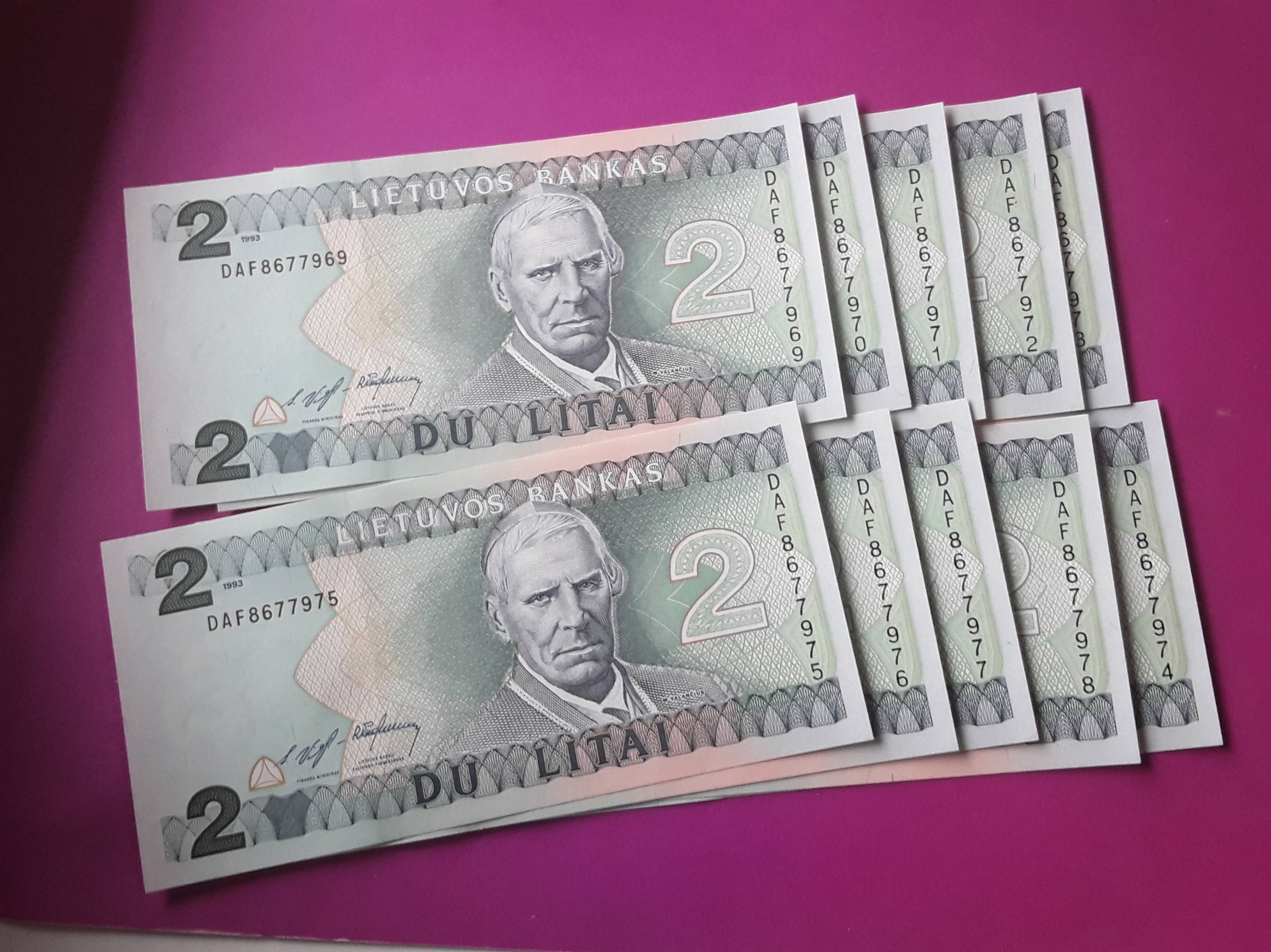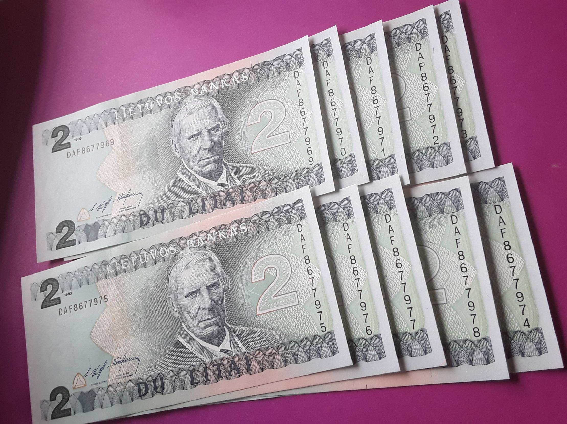 LIETUVA 2 LITAI 1993m UNC DAF SERIJA