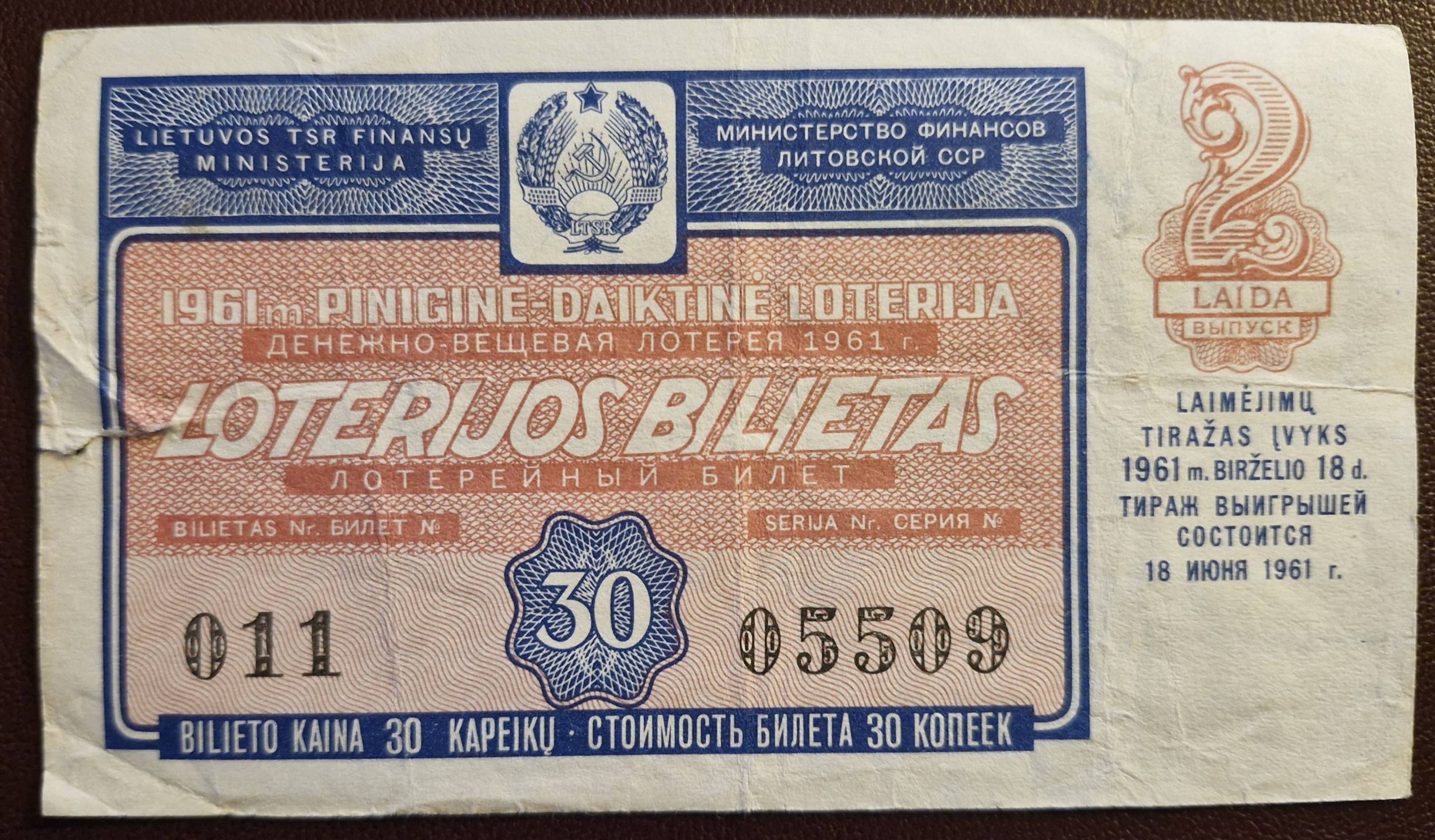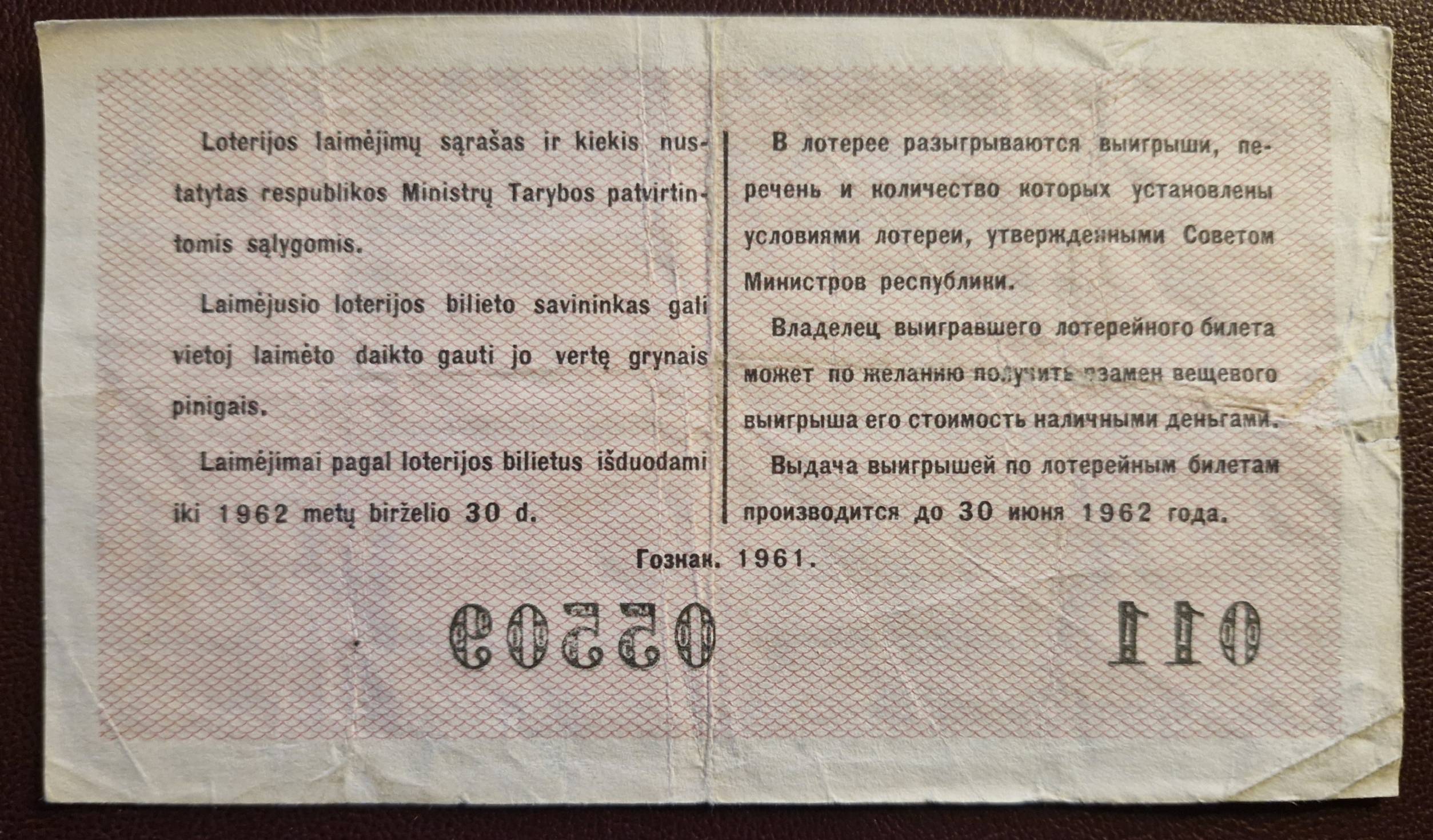 Loterijos Bilietas - Lietuva 1961 m. - Nuo 1 Eur