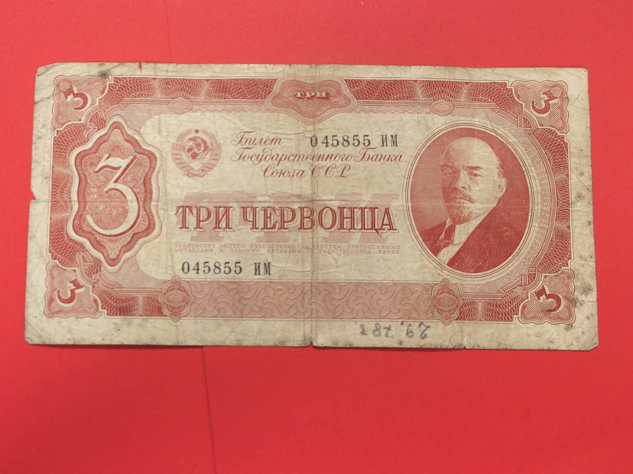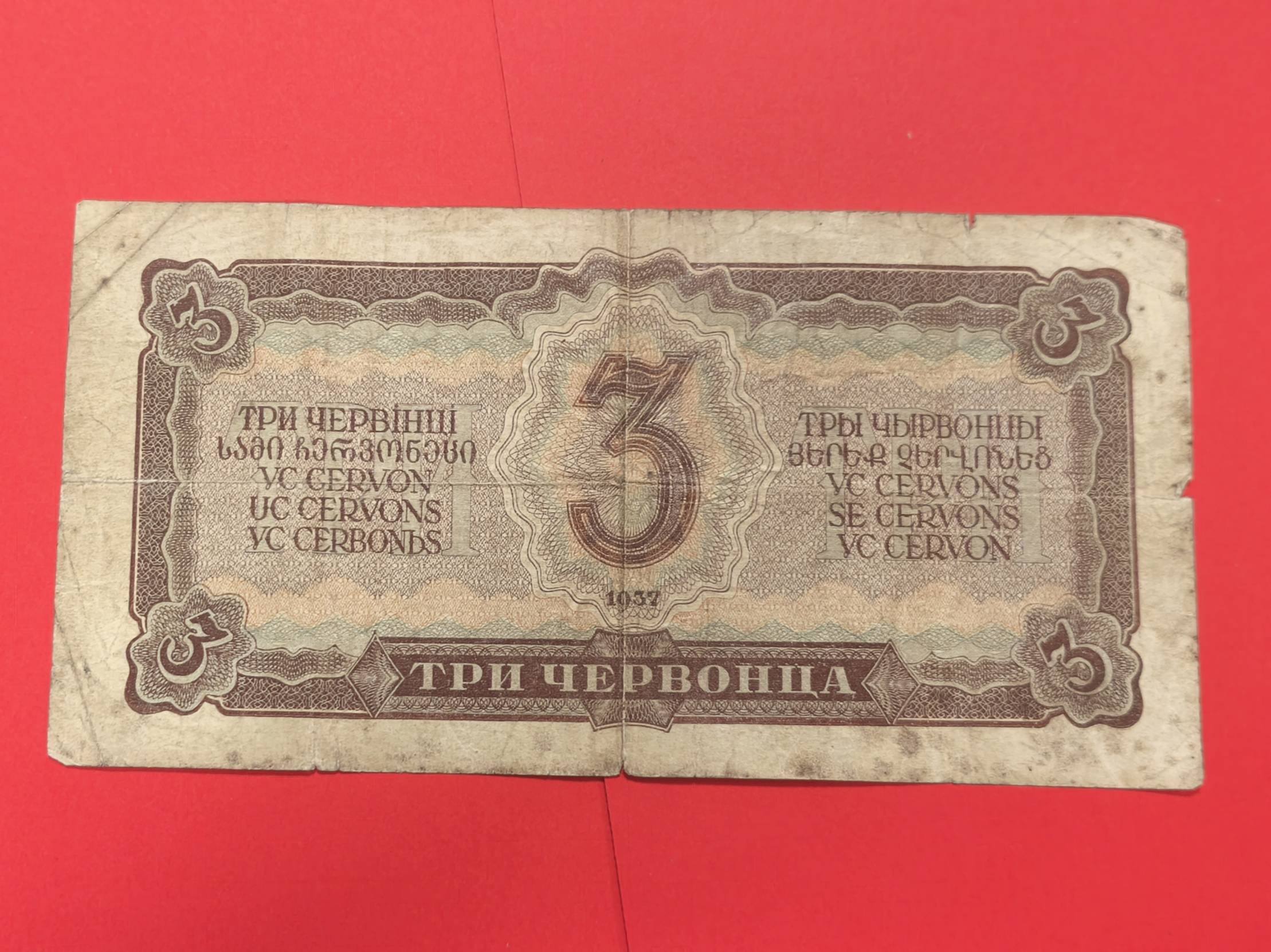 banknotas 1937 m. 3 ęervoncai Rusija ...855