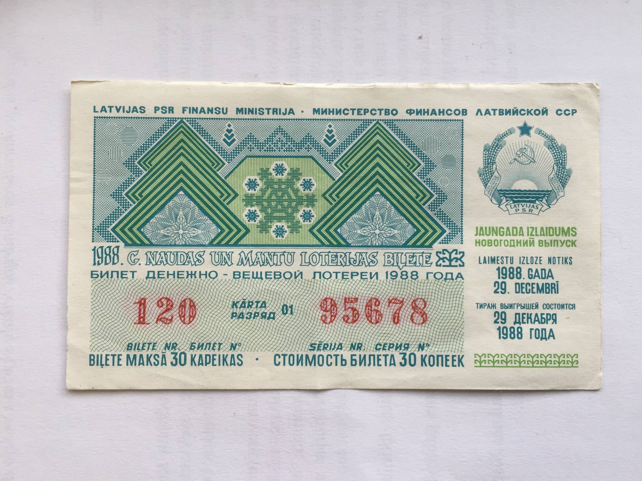 Latvija Naujametinė loterija 1988m Nuo 1 eur