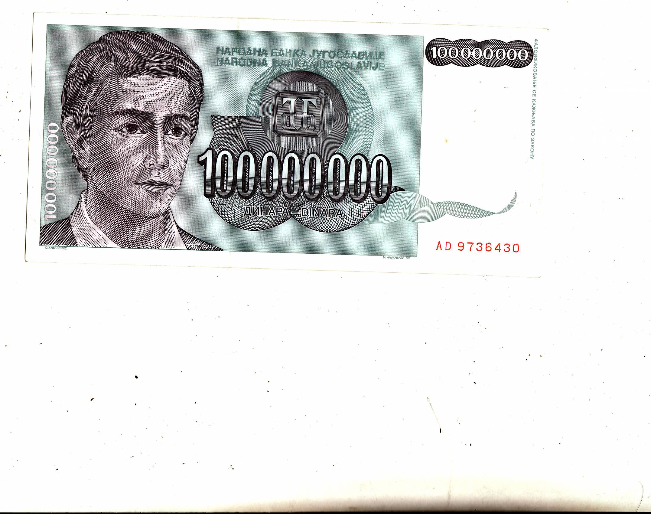 Yugoslavia 100mln.din.1993m.P124