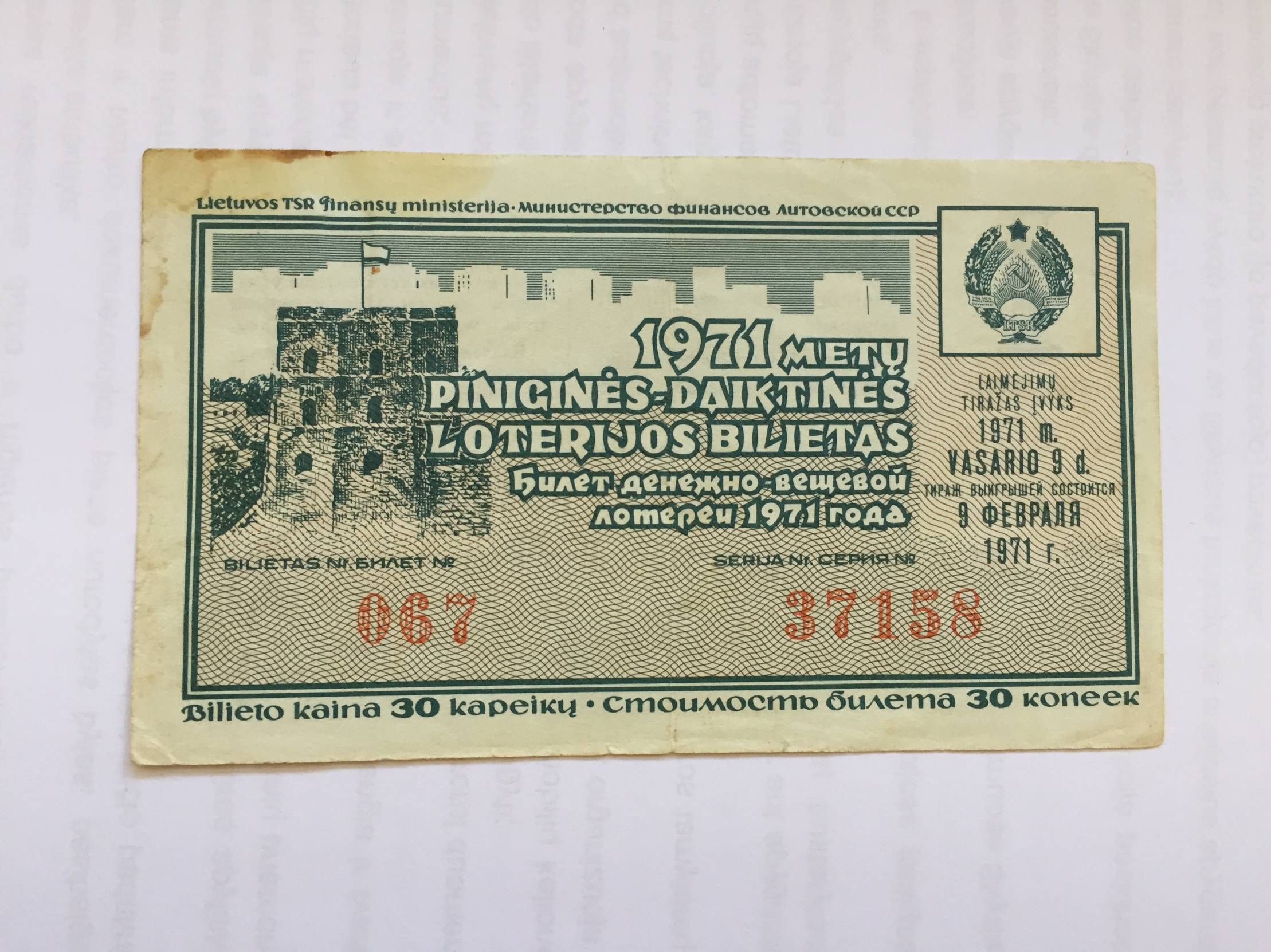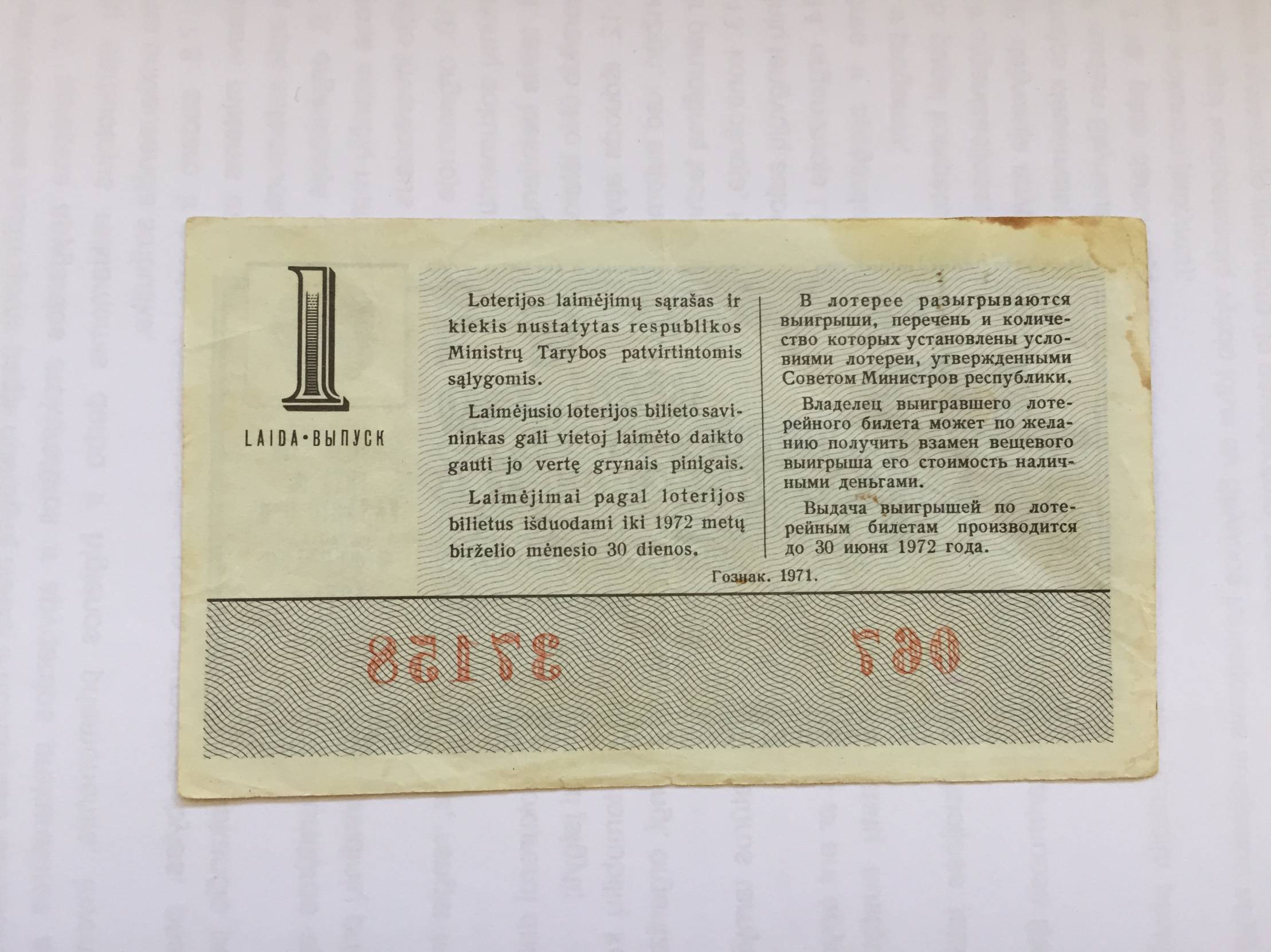 Lietuva Loterijos bil. 1971m. 1 laida Nuo 1 euro