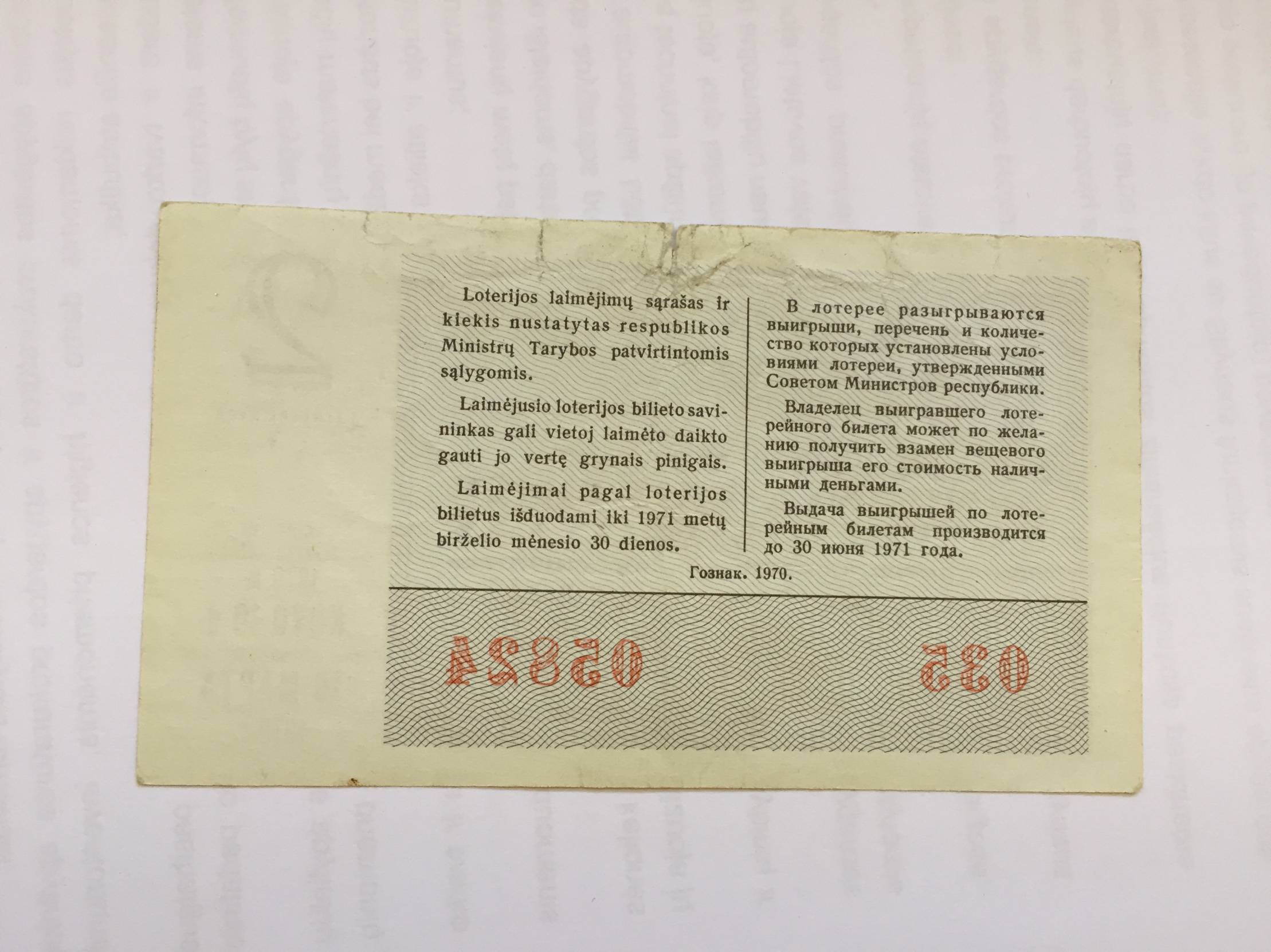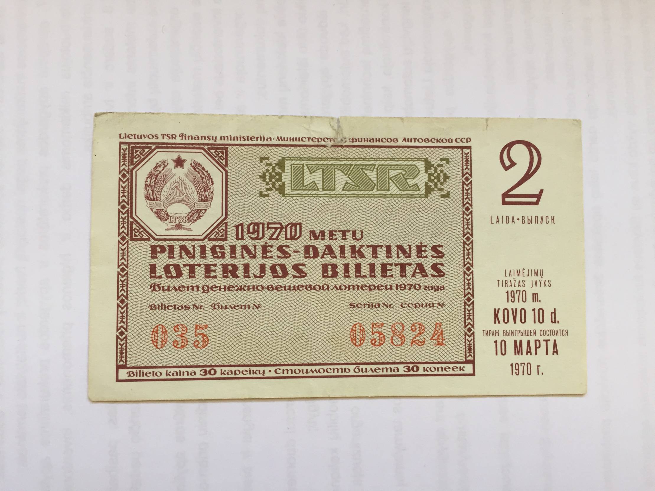 Lietuva Loterijos bil. 1970m. 2 laida Nuo 1 euro