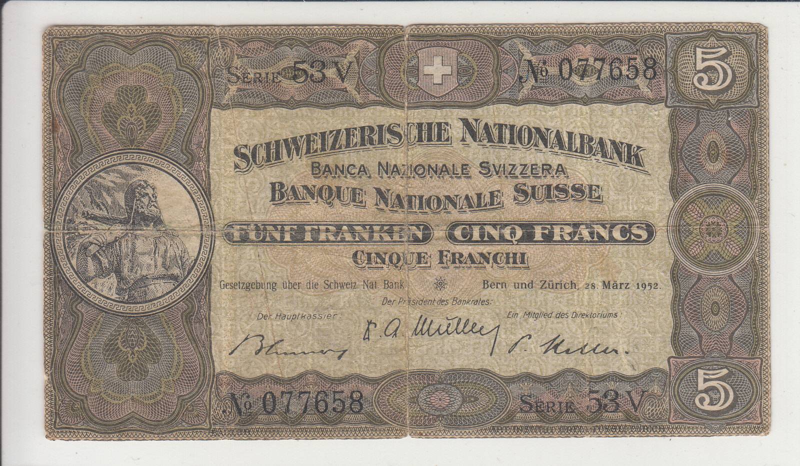 Šveicarija_5 frankai_1952m_nuo 1€!