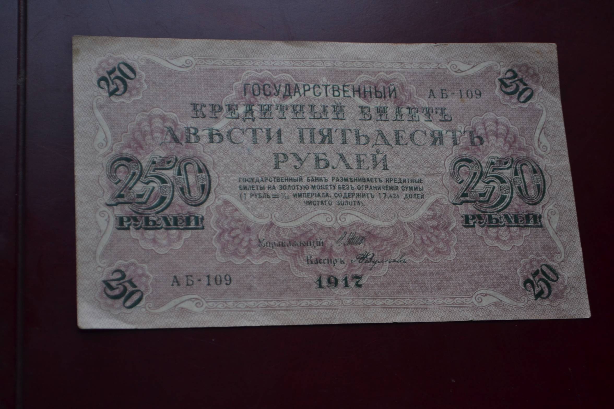 250 rubliu 1917 m. AB,nuo 1 Euro