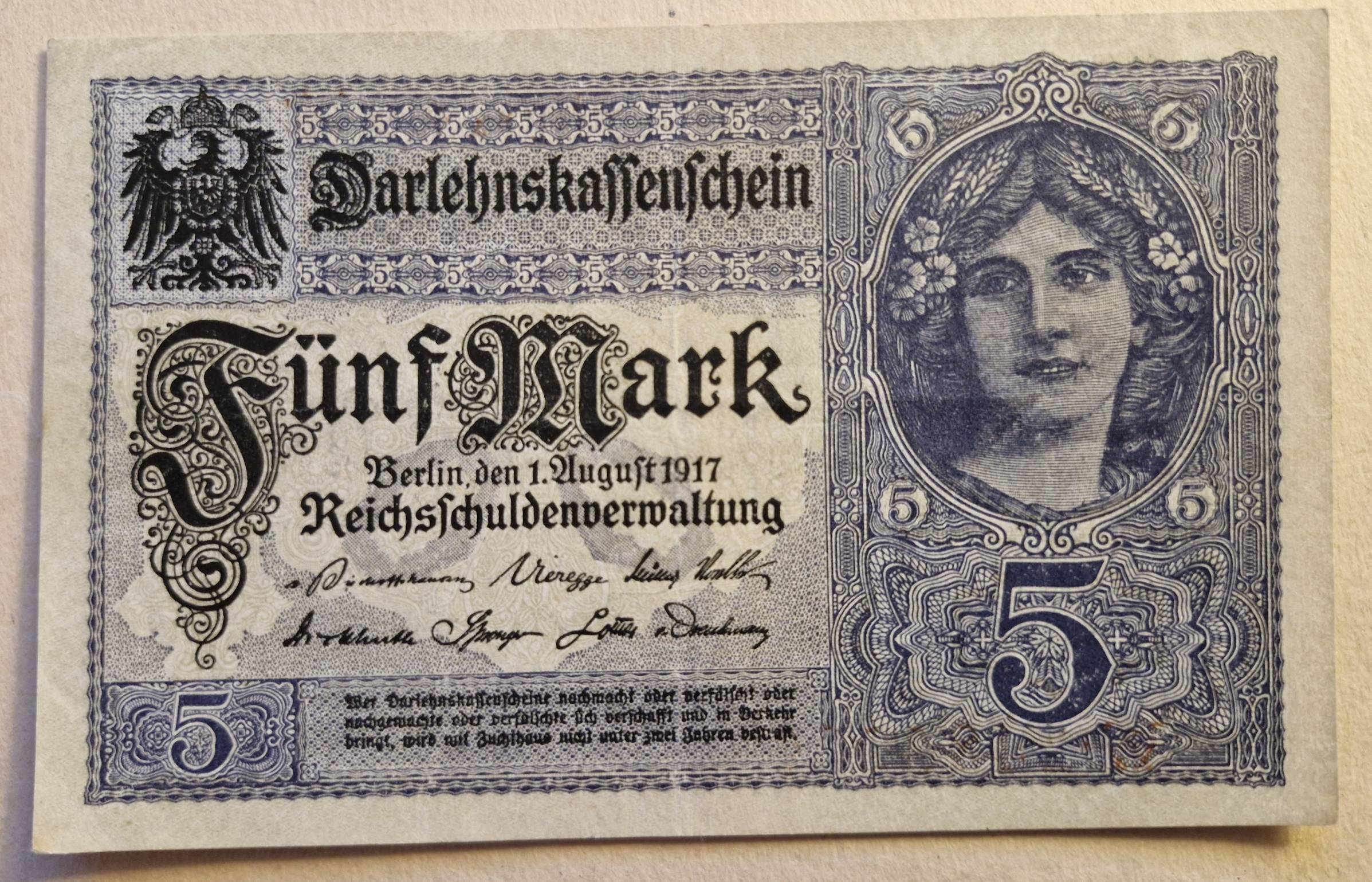 5 mark 1917 m. Vokietija - Nuo 1 Eur