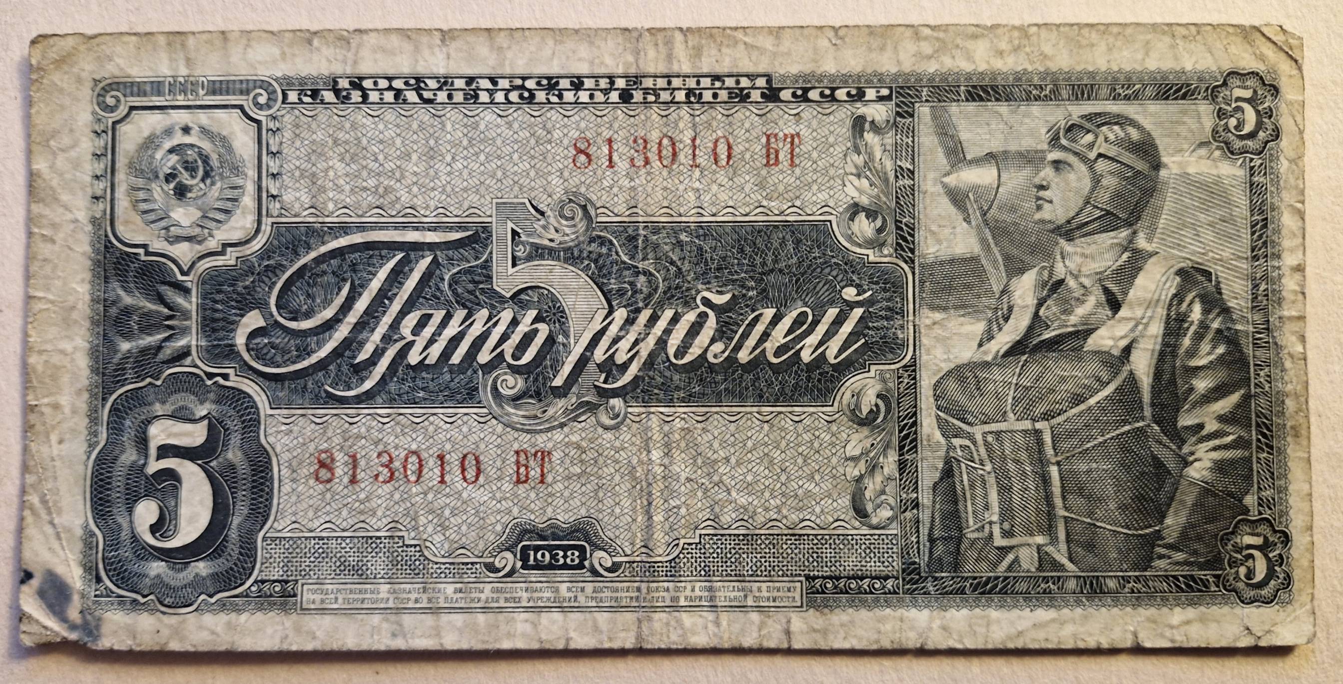 5 Rubliai 1938 m. Rusija - Nuo 1 Eur