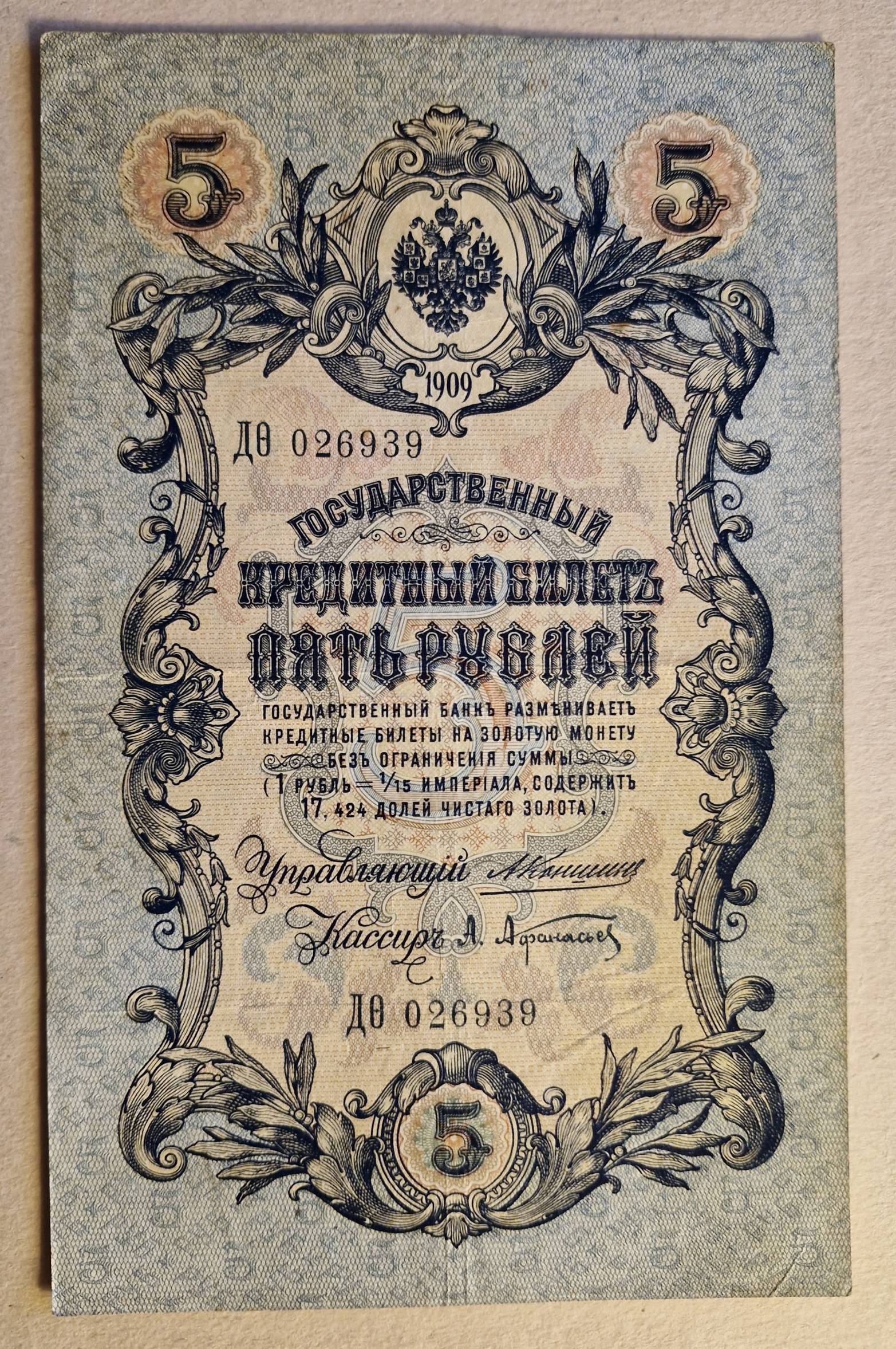 5 Rubliai 1909 m. Konshinas Rusija - Nuo 1 Eur