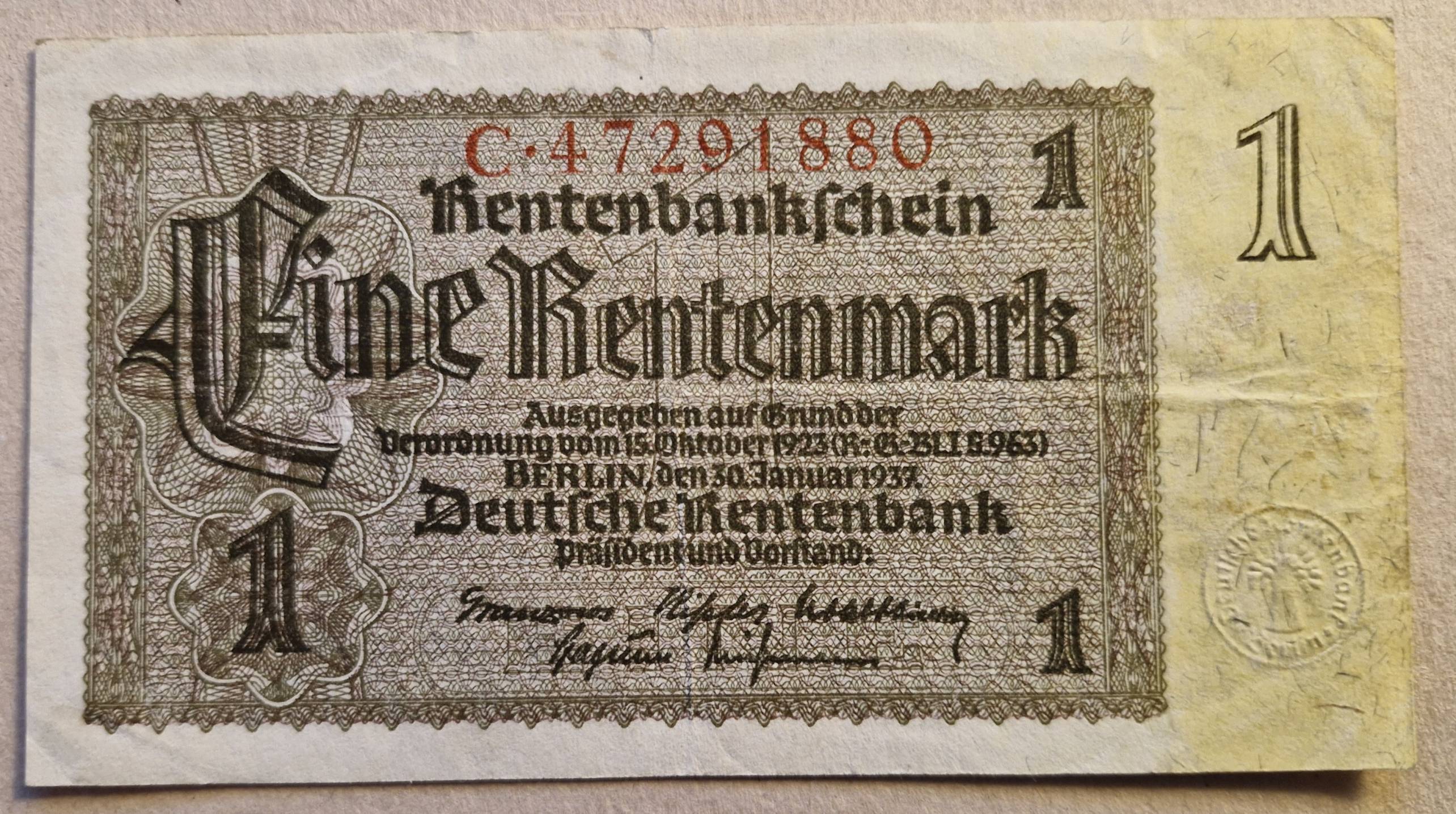 1 Retenmark 1937 m. Vokietija - Nuo 1 Eur