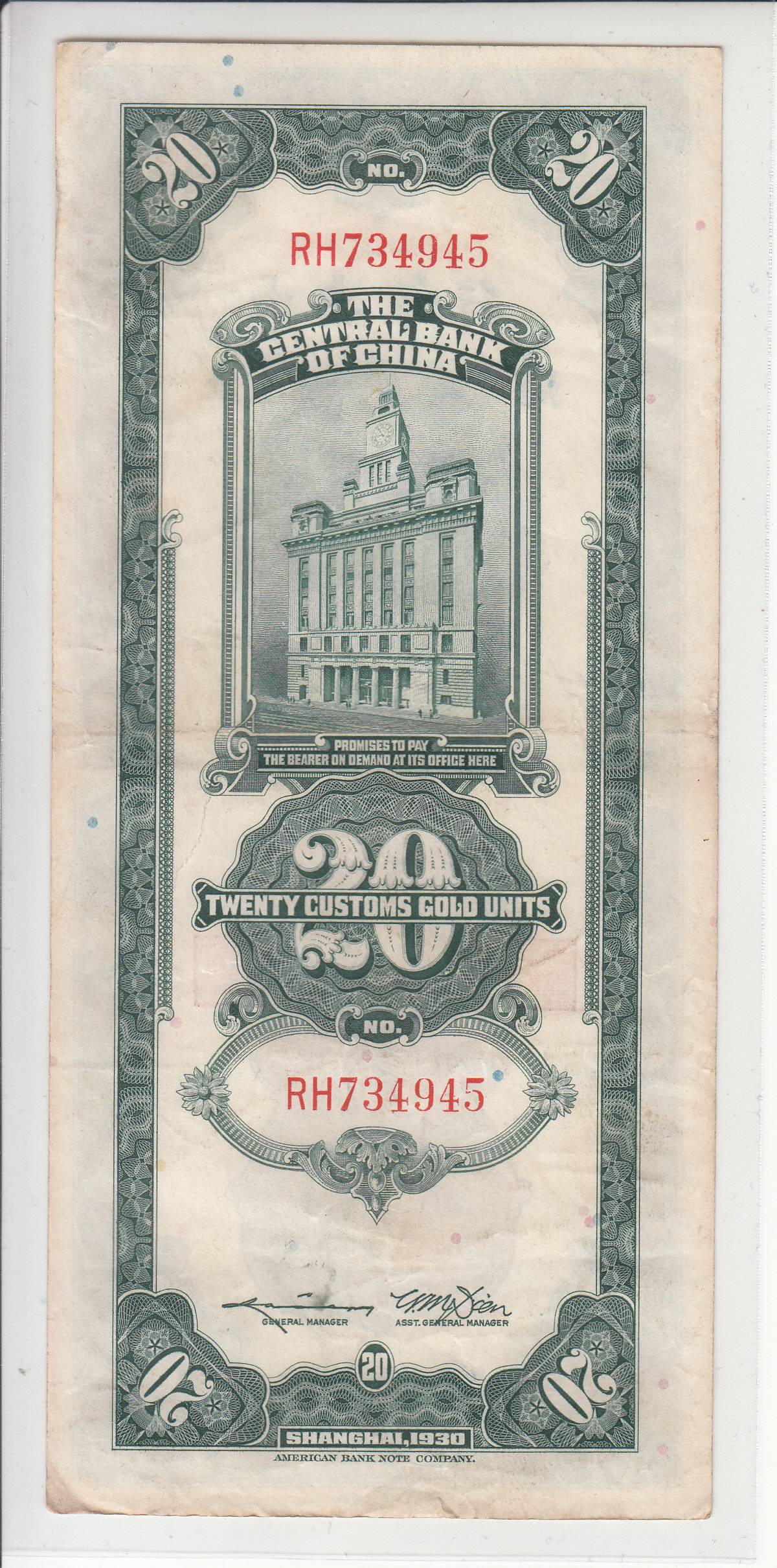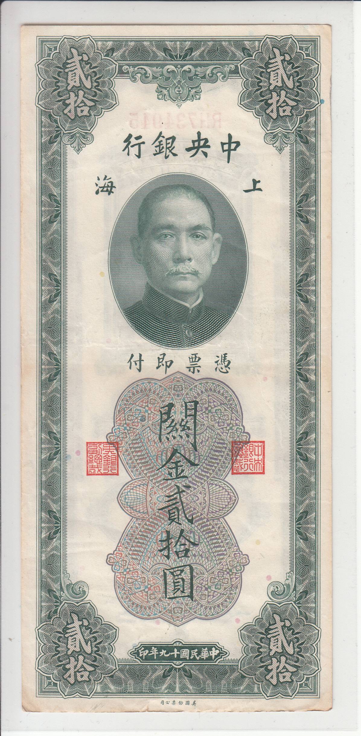 Kinija_20 auksinų_1930m_nuo 1€!