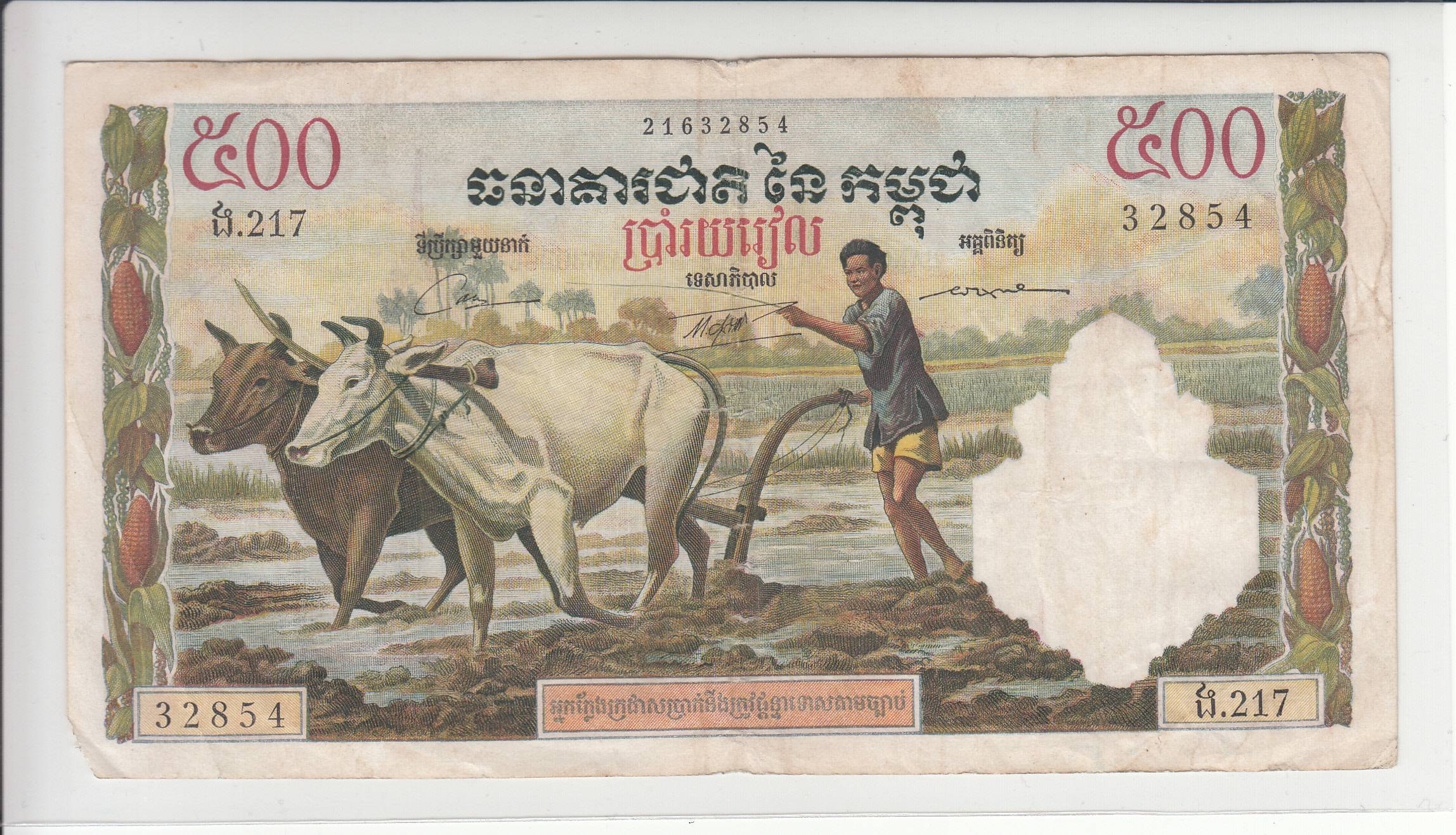 Kambodža_500 rielių_1956m_nuo 1€!
