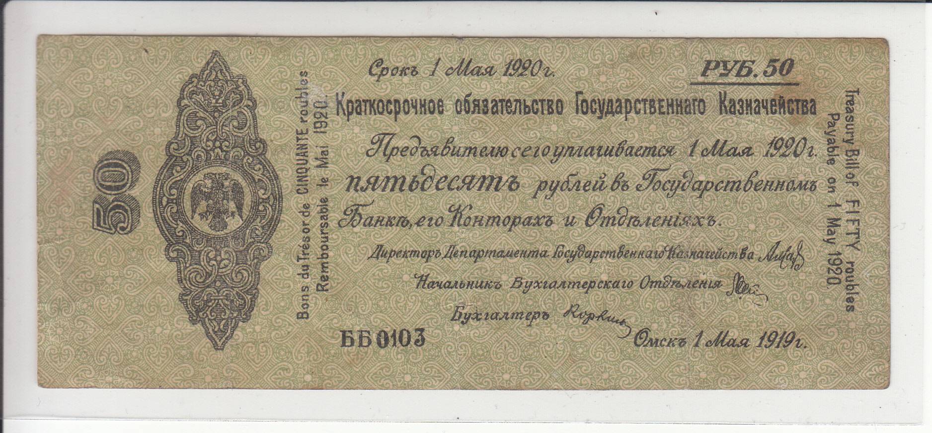 Rusija_50 rublių_1919m_nuo 1€!
