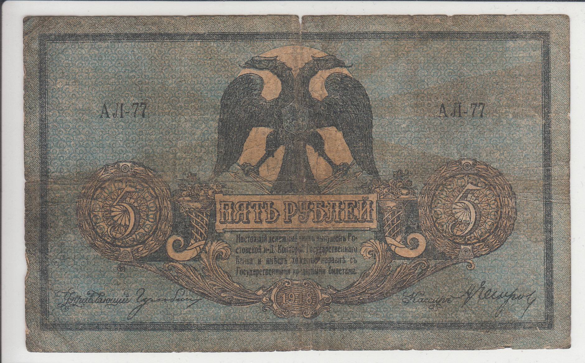 Rusija/Rostovas_5 rubliai_1918m_nuo 1€!